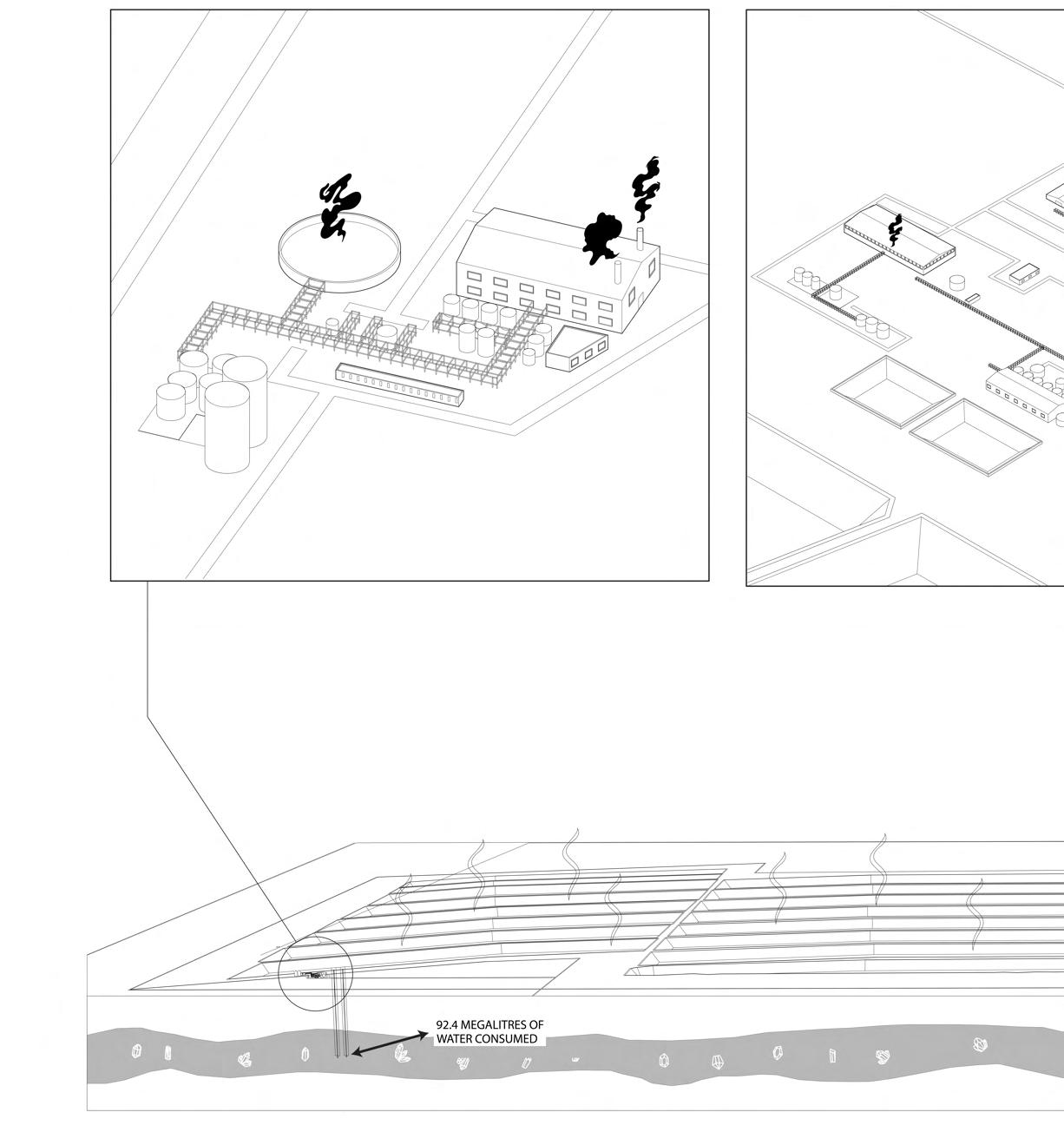 • Water Consumption of 2.92L/s, which is about 92.4 megaliters of water per year. This rate of consumption causes a risk to the total amount of water supply in the region.