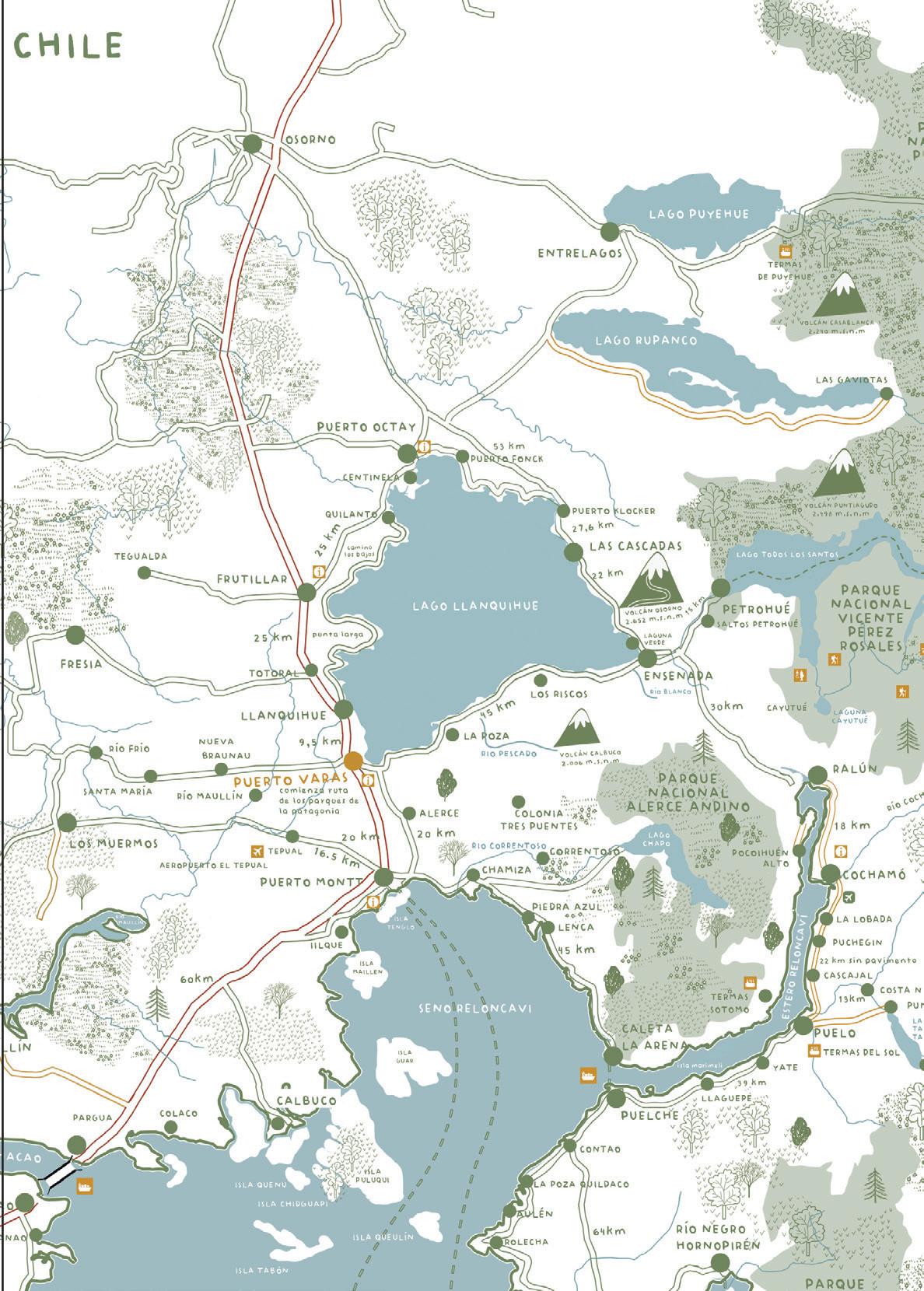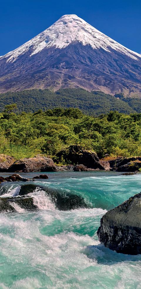 La Región de Los Lagos alberga uno de sus tesoros más destacados: El Volcán Osorno y sus alrededores. A unos 60 kilómetros de Frutillar, este destino ofrece paisajes exuberantes y cargados de naturaleza y misticismo, ideales para momentos de paz y reflexión. Si buscas un desafío mayor, atrévete a escalar hasta la cima del Volcán Osorno. La ascensión, que suele durar entre 4 y 5 horas, te recompensará con una panorámica espectacular del Río Petrohué, el Lago Llanquihue y otros imponentes volcanes cercanos. Para una experiencia segura y cómoda, te recomendamos contratar un tour operador registrado en Sernatur (Ver pág. 7).