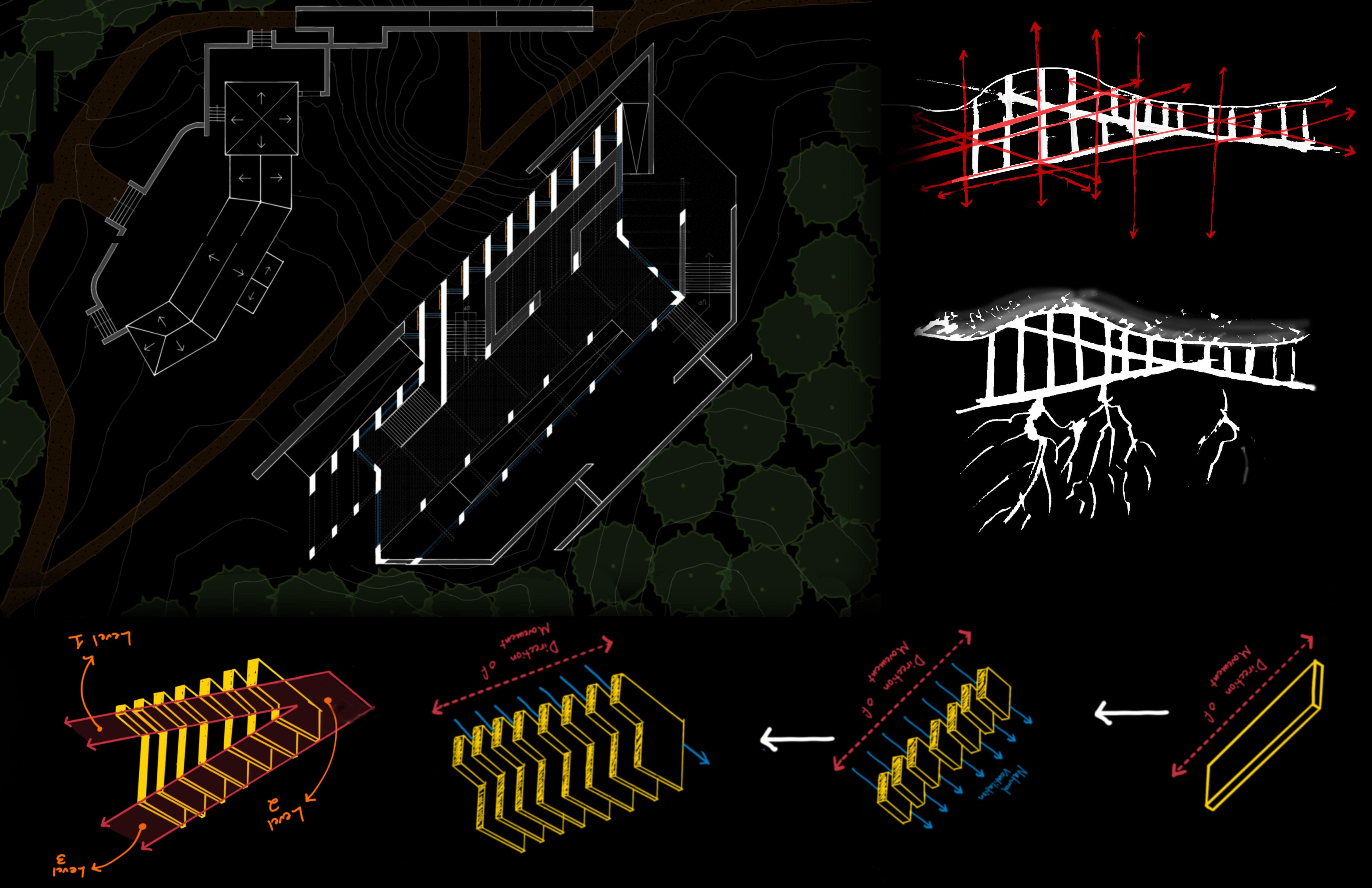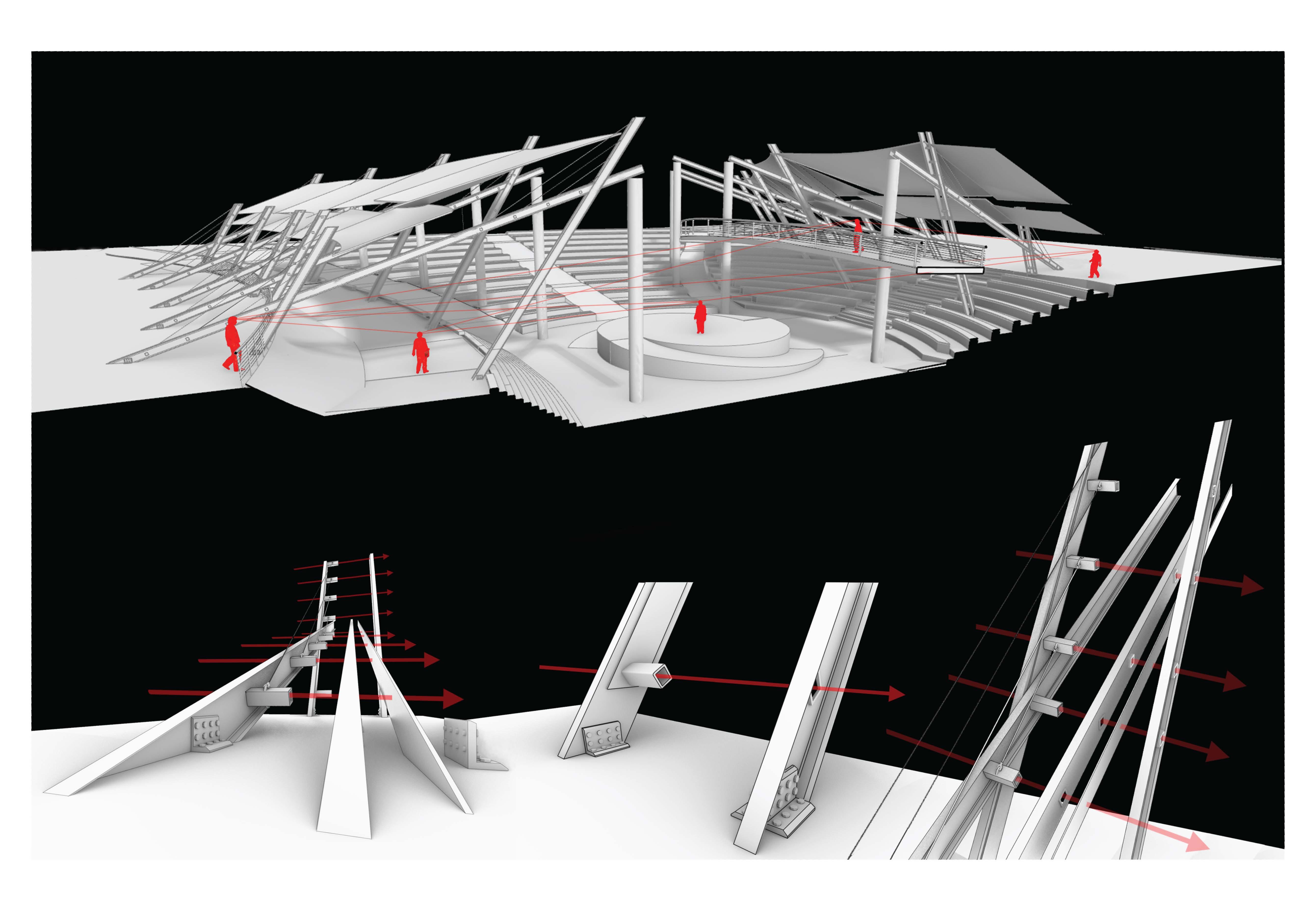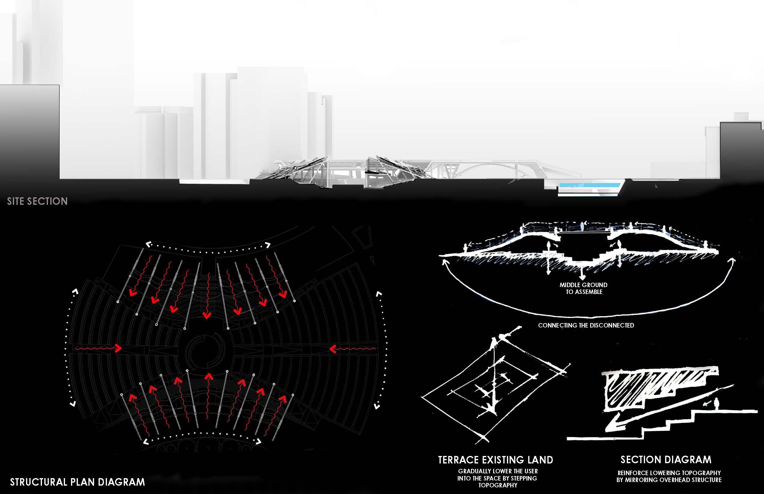 ONCE EACH SIDE IS CONNECTED, HOW CAN THE PROPOSED STRUCTURE DIRECT MOVEMENT AND VIEWS TO INVITE USERS TO THE CENTERED AND THE ADJACENT SPACES