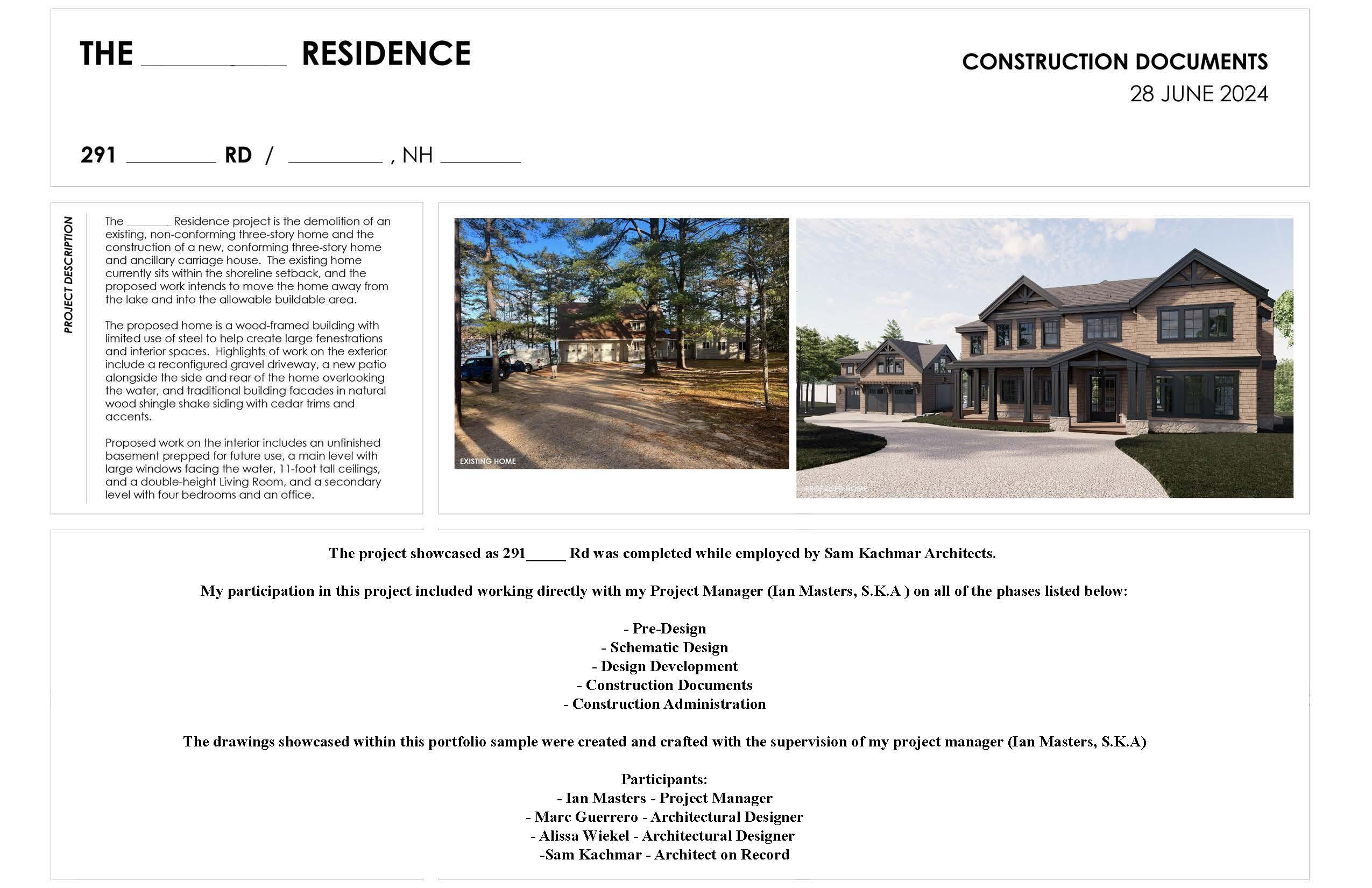 The project showcased as 291 __ Rd was completed while employed by Sam Kachmar Architects.