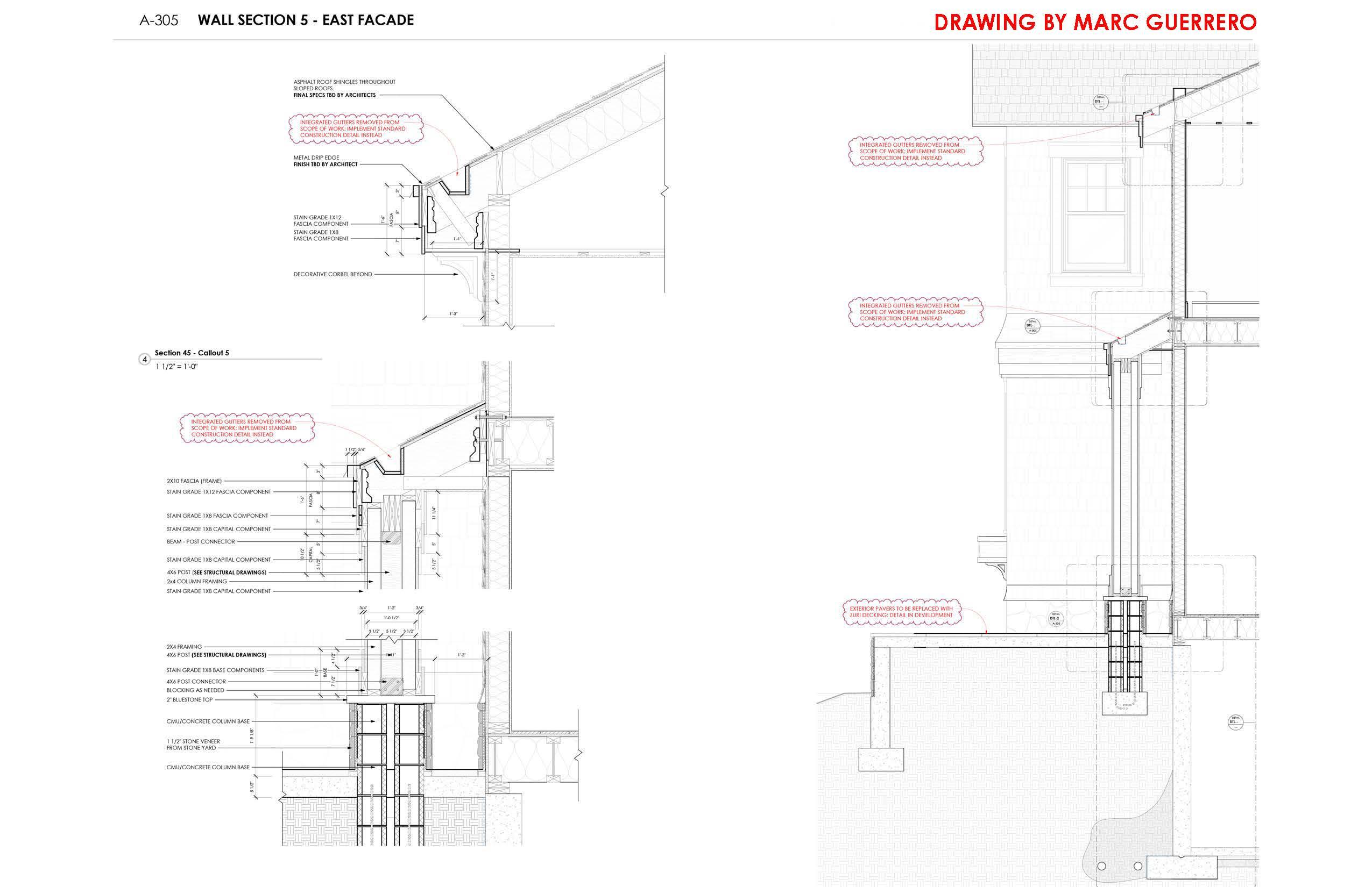 My primary responsibility was to develop and update drawings related to the building's exterior fa~ade. This included foundation conditions in relation to grade, exterior wall assemblies, and detailed exterior components.