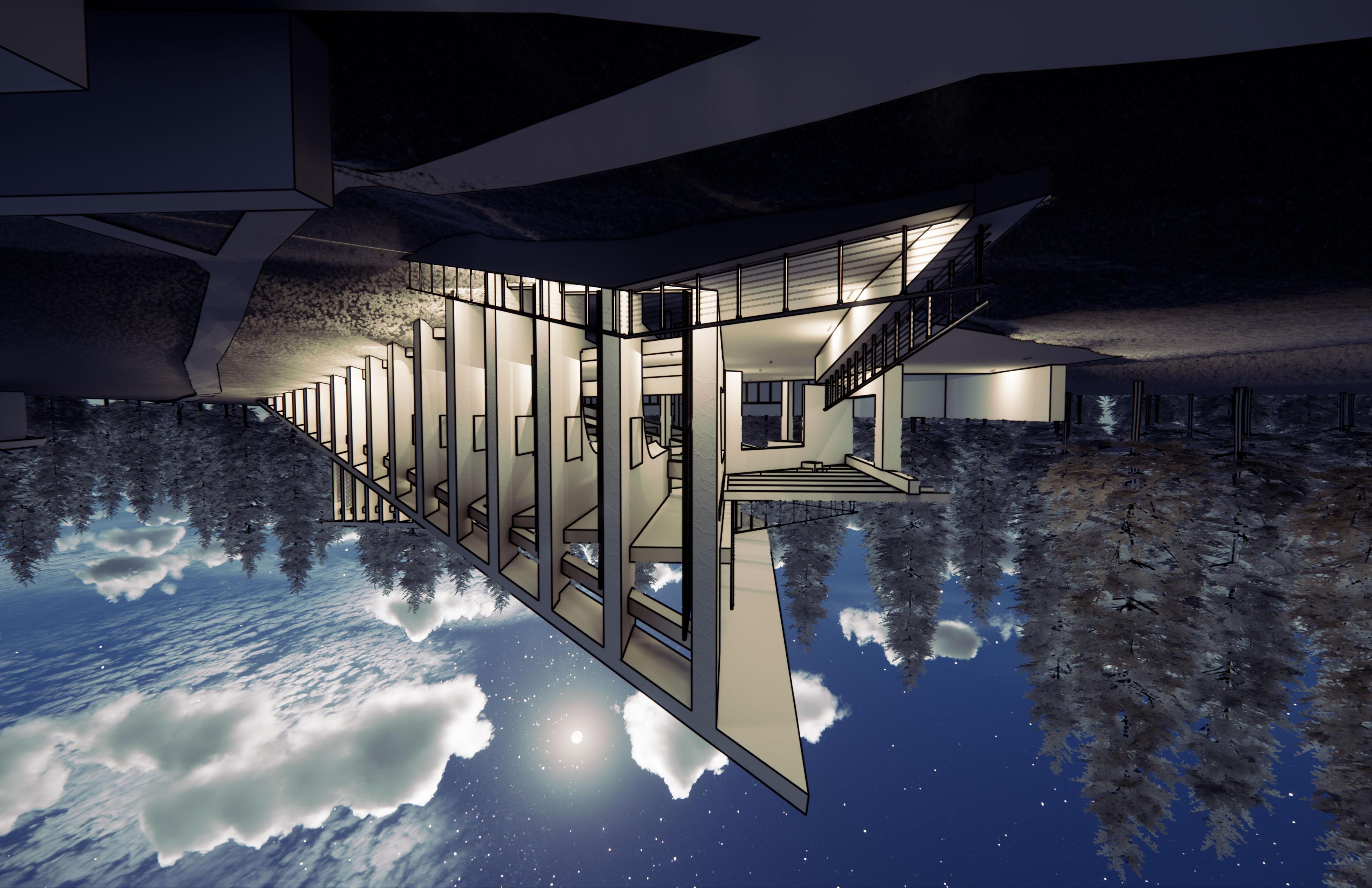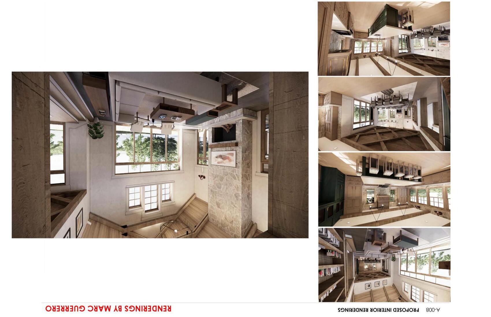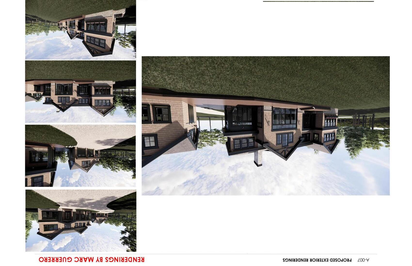 Pro p osed work on the interior includes an unfin ished basemen t p repped for future use, a mai n level wi t h large w indows facing th e wa t er, 11 -foot ta l ceili n gs, and a double- height Living Room, and a secondary leve w ith four bedrooms and an office .