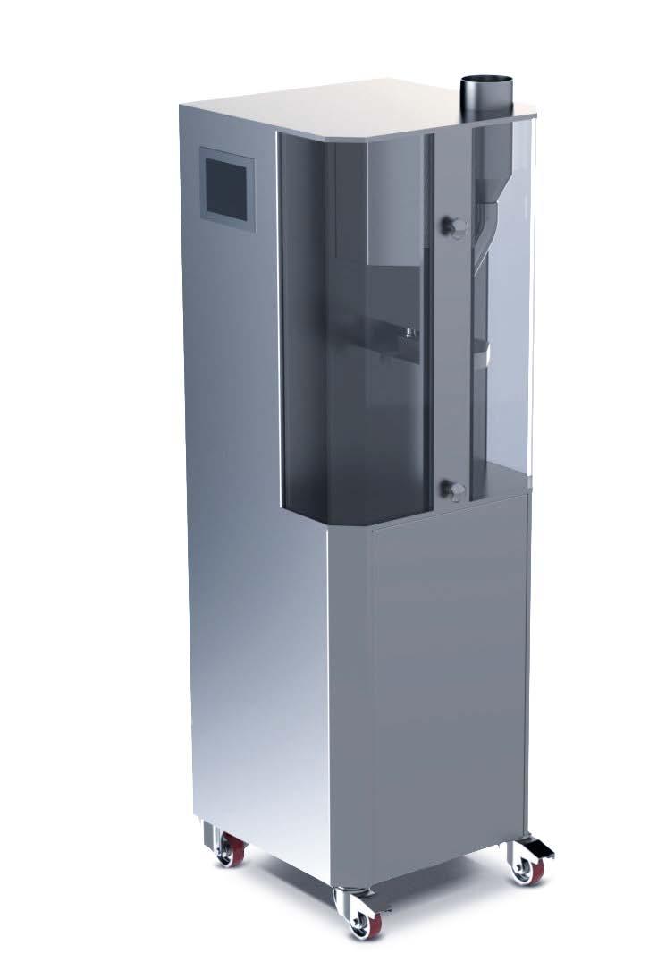 The operator places the container on the customized base and can adjust the spinning speed depending on the kind of product.