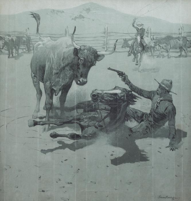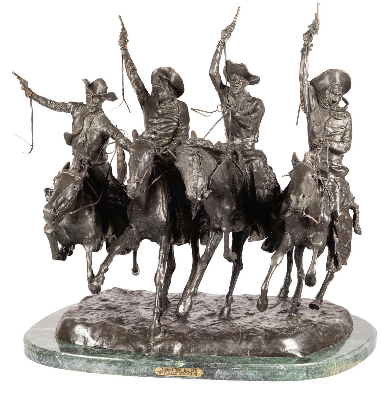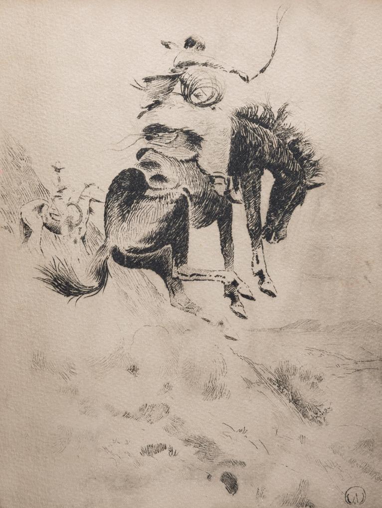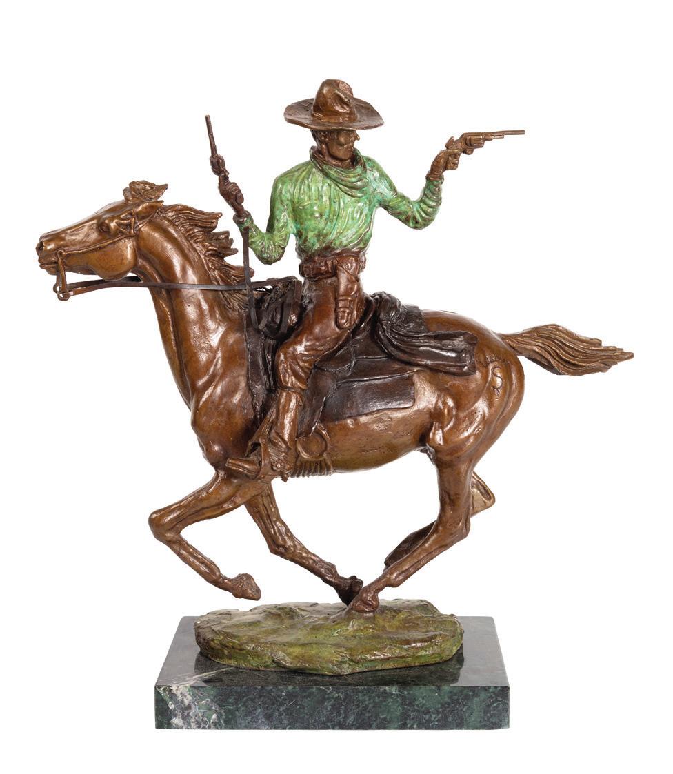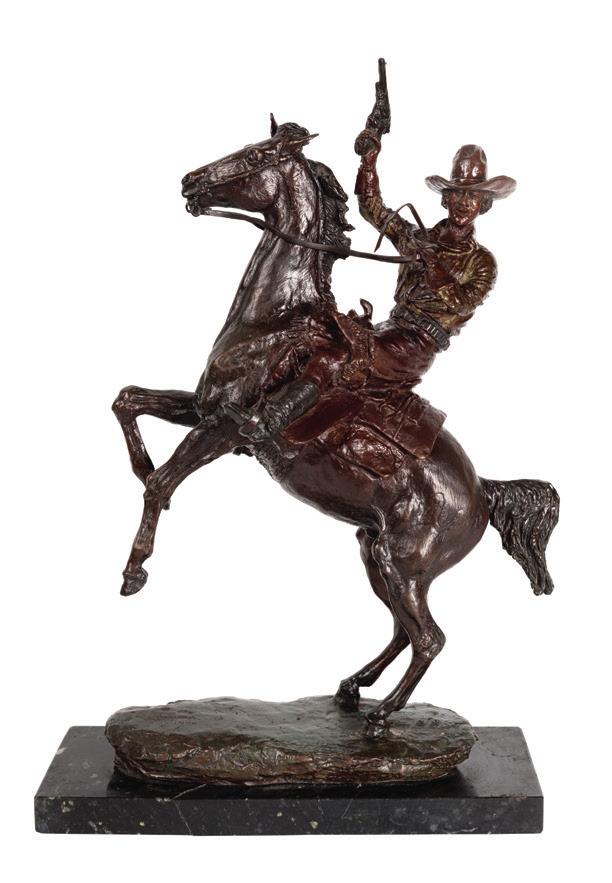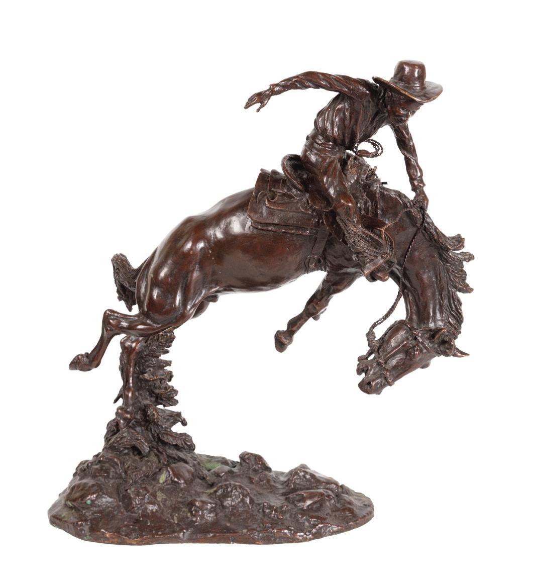 Back Cover: Lot 632, Frederic Remington, The Broncho Buster, 22 ¾” x 19” x 12” original bronze, $40,000-60,000