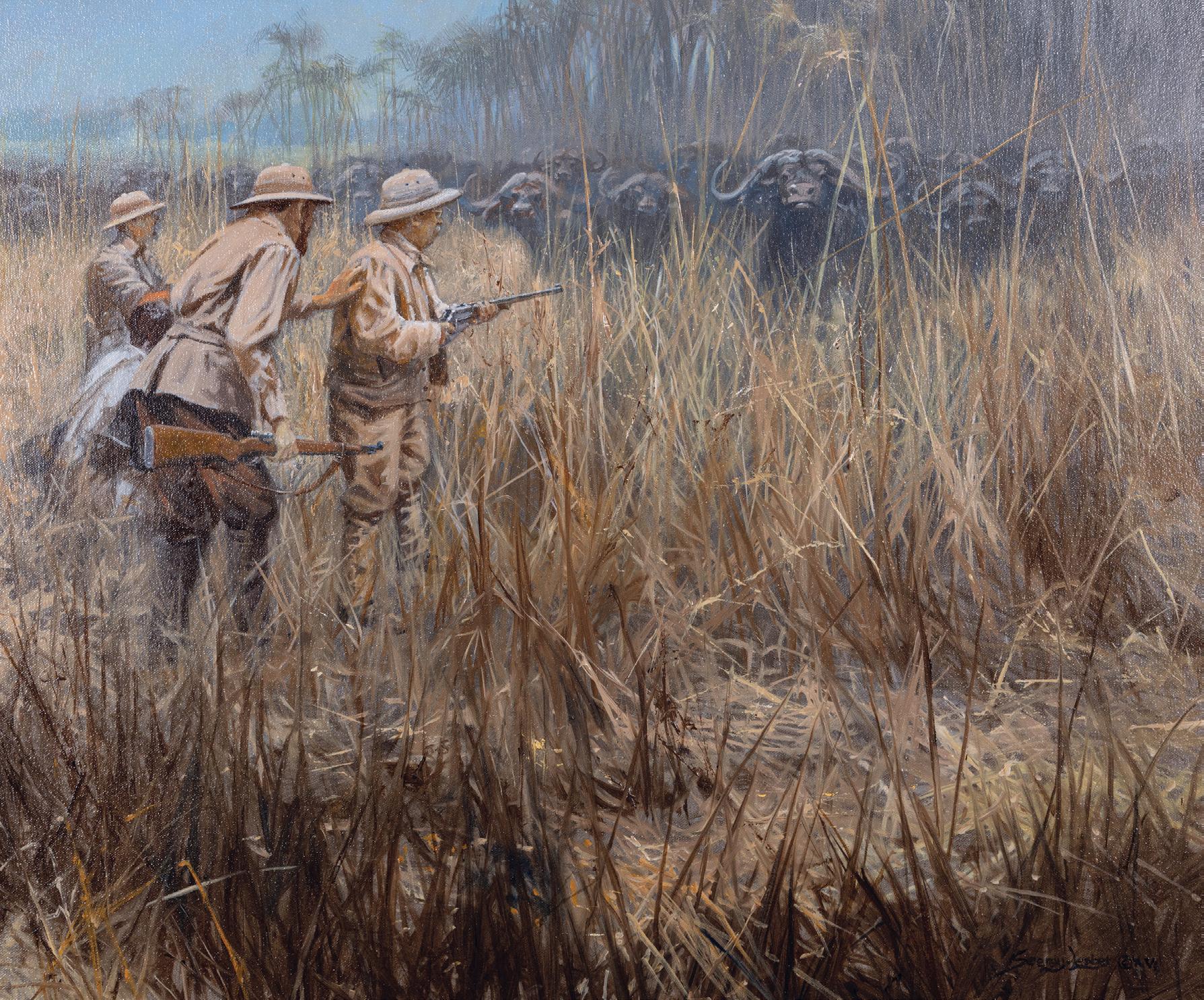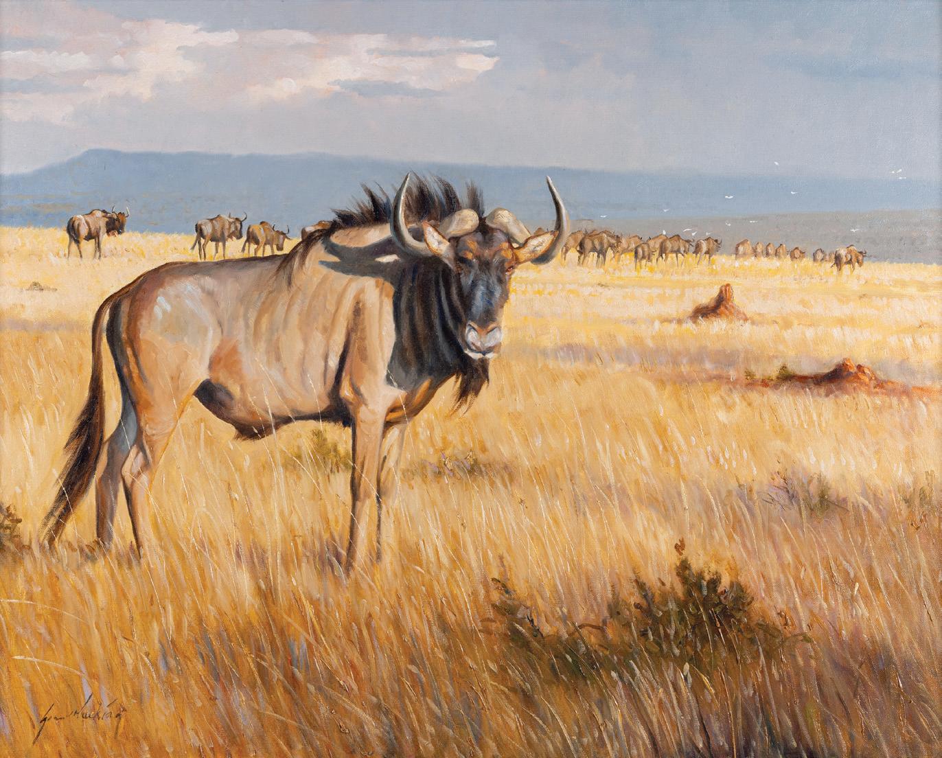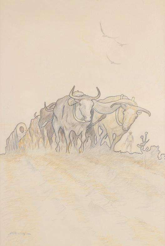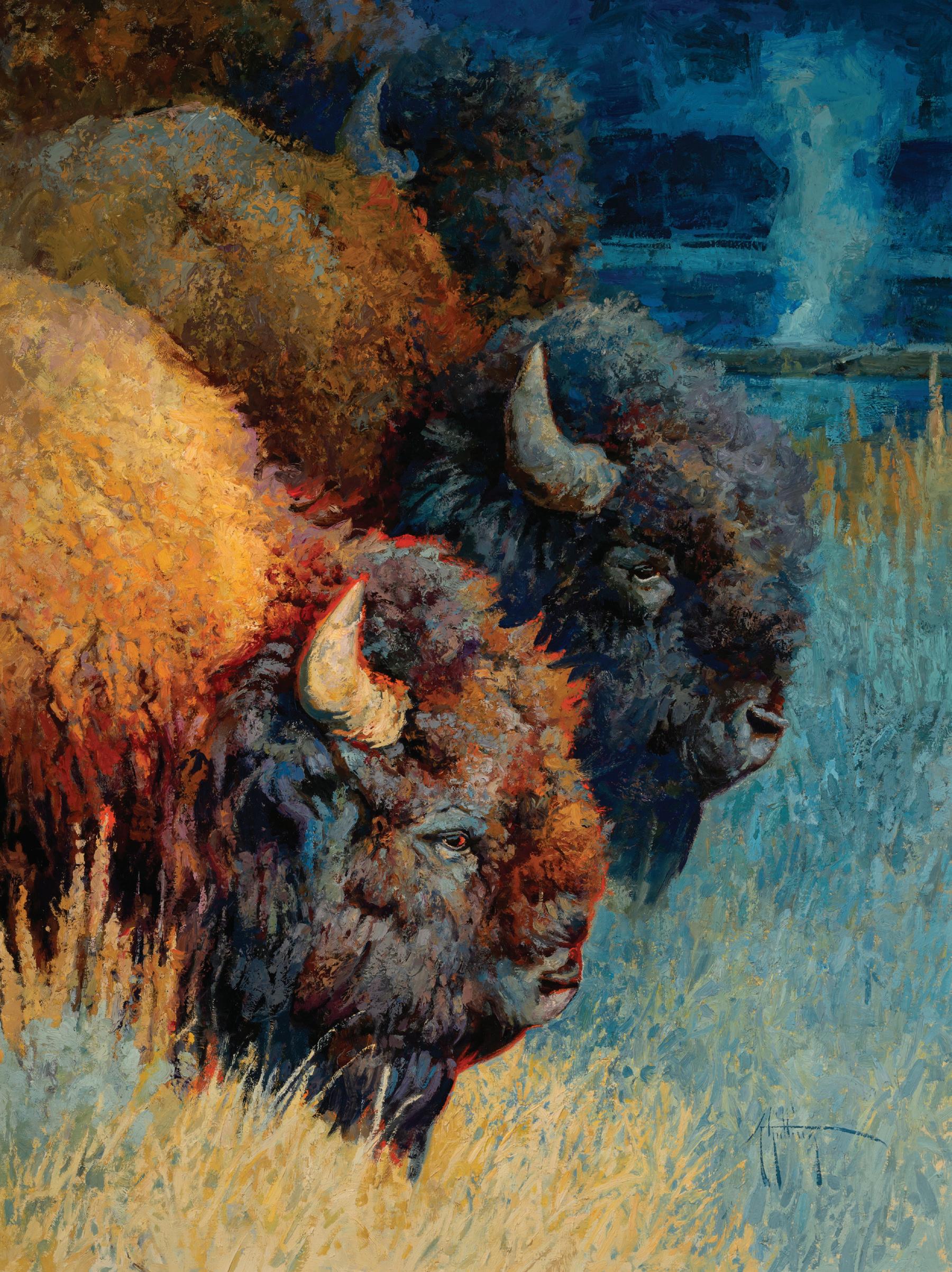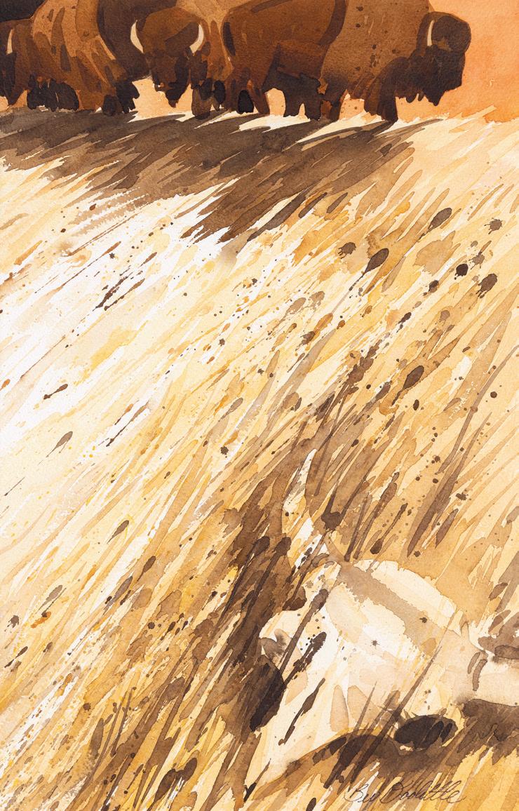 Inside Back Cover: Lot 380, Ed DuRose, Buffalo Herd, 30” x 40” acrylic on canvasboard, $3,000-4,000