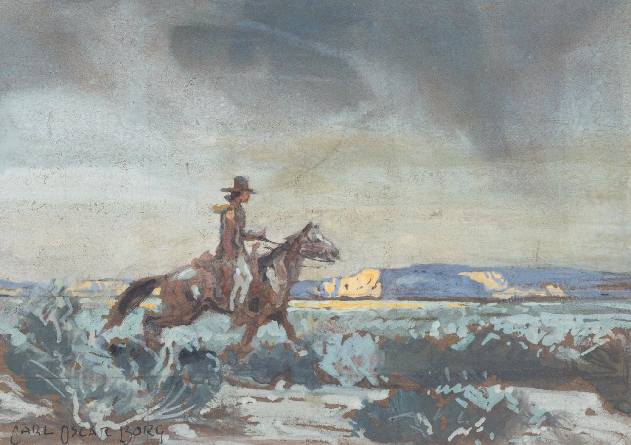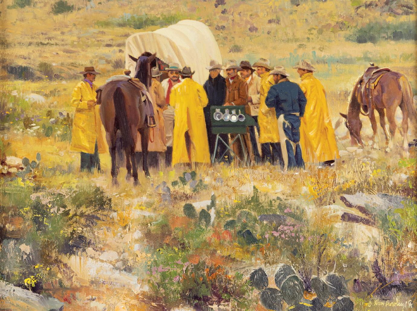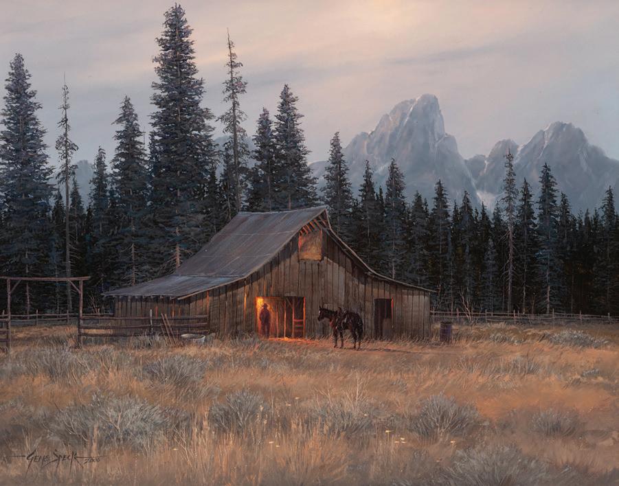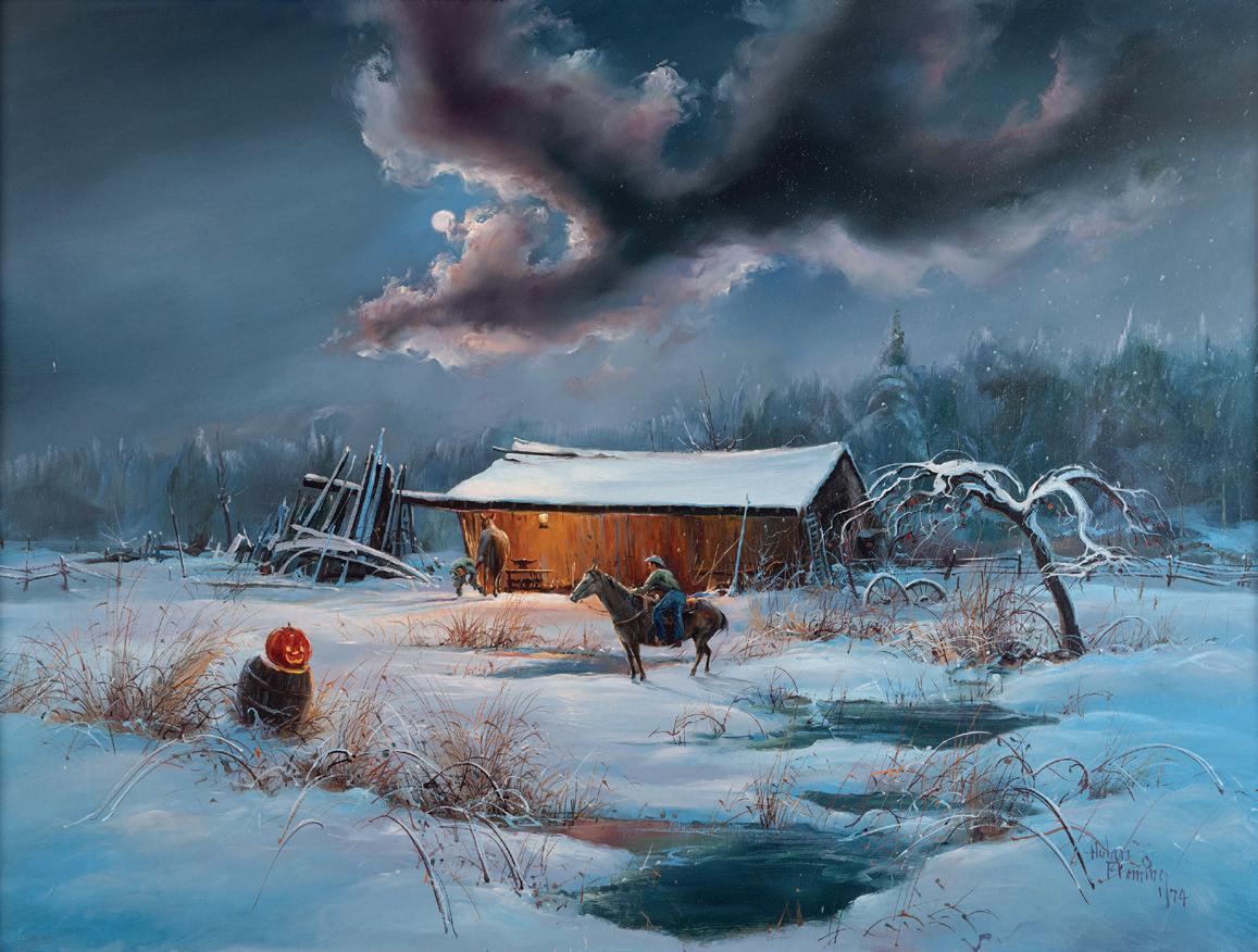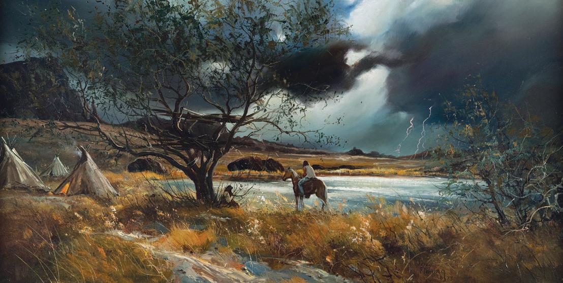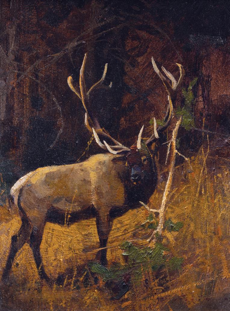 Front Cover: Lot 387, Don Oelze, Dusk at Elkhorn Camp, 44” x 44” oil on canvas, $25,000-35,000