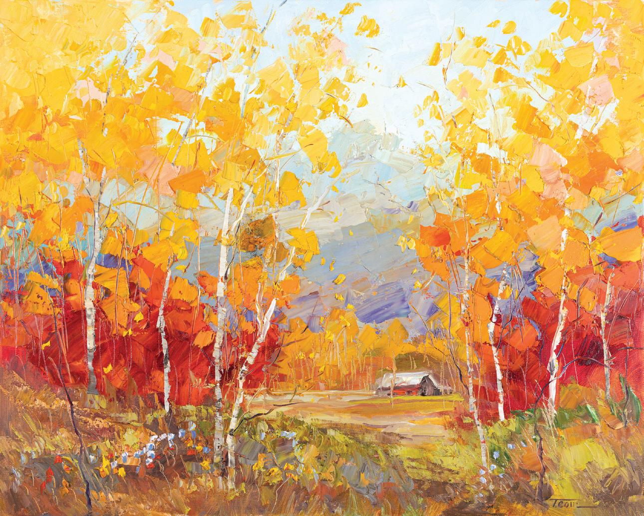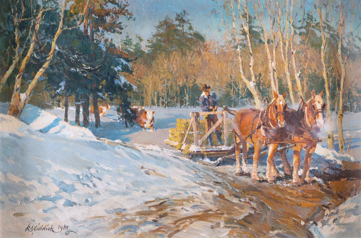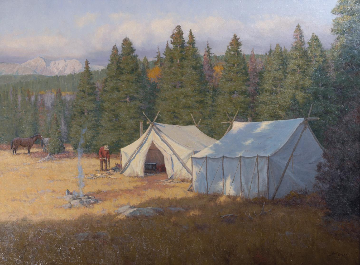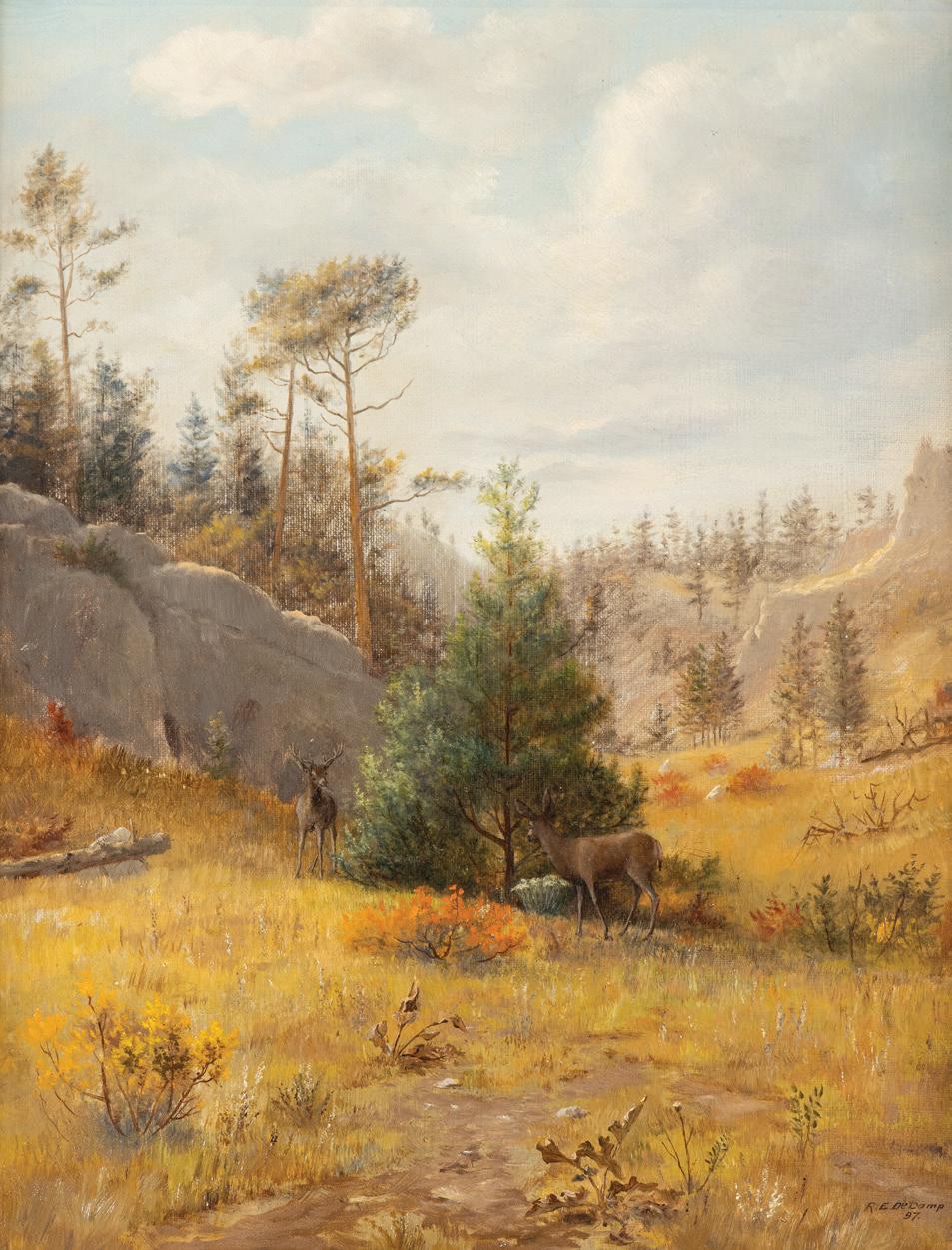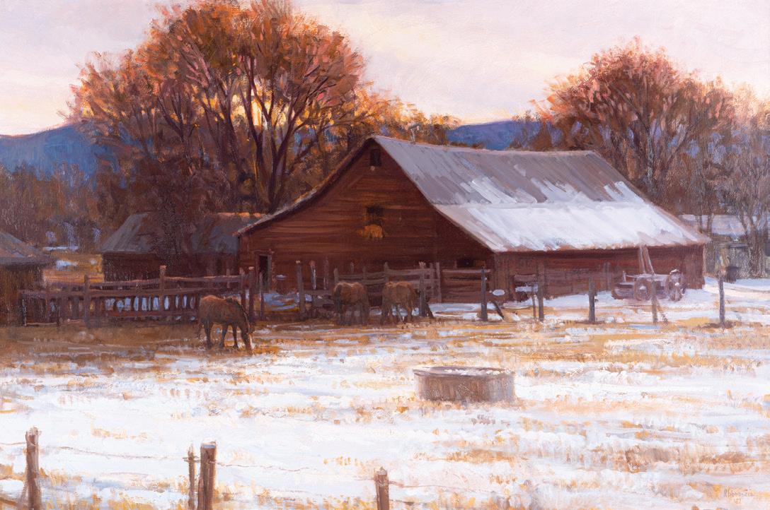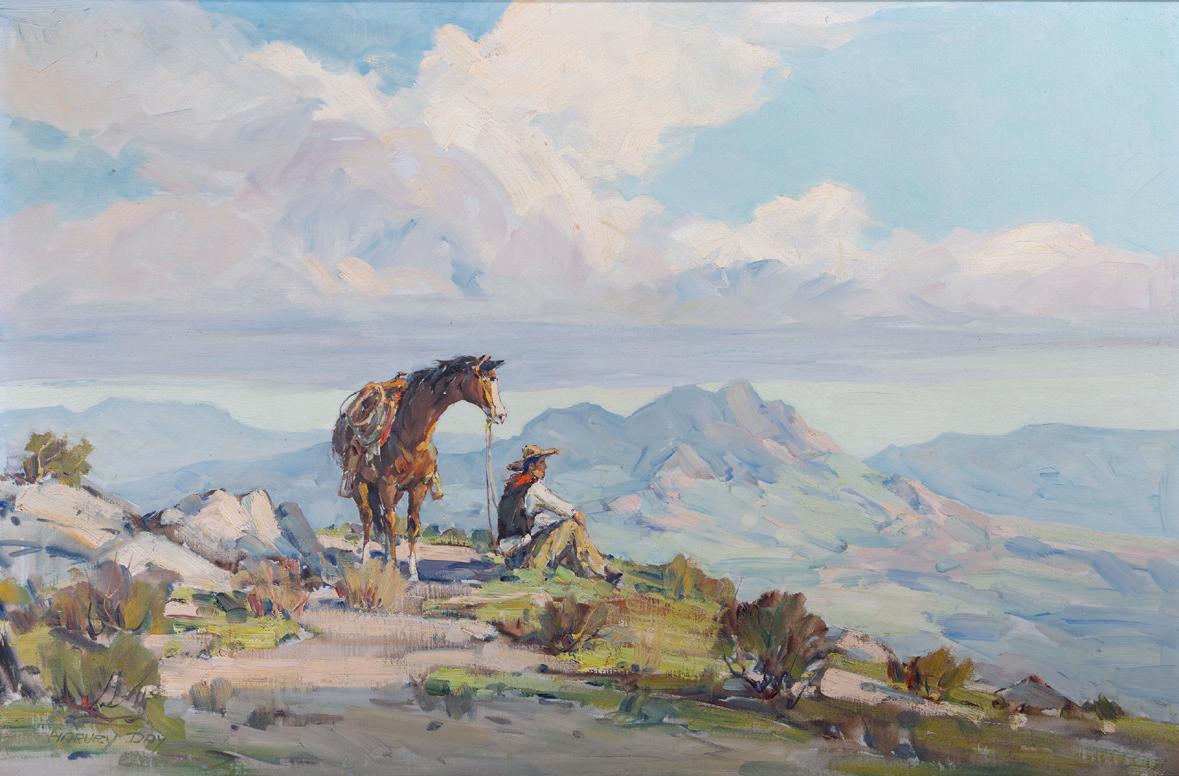 Front Cover: Lot 387, Don Oelze, Dusk at Elkhorn Camp, 44” x 44” oil on canvas, $25,000-35,000