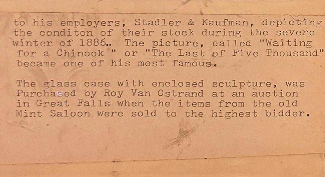 Provenance: Collectors Notes. Collector Bill Brandt, a proud Montanan, born and raised in Great Falls, MT.