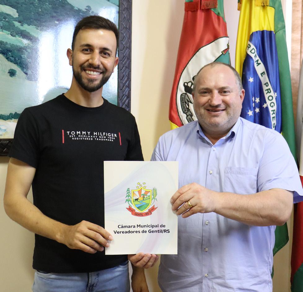 mais alternativas de deslocamento e acessibilidade que facilita a logística e mais investimentos na cidade”, destaca o presidente da Câmara, Gustavo. Gentil já conta com o projeto para execução de asfaltamento pronto realizado com recursos próprios do município, além disso, oferta a possibilidade ao Governo em aderir ao PIAA / RS - Programa de Incentivo ao Acesso Asfáltico para facilitar o início das obras.
