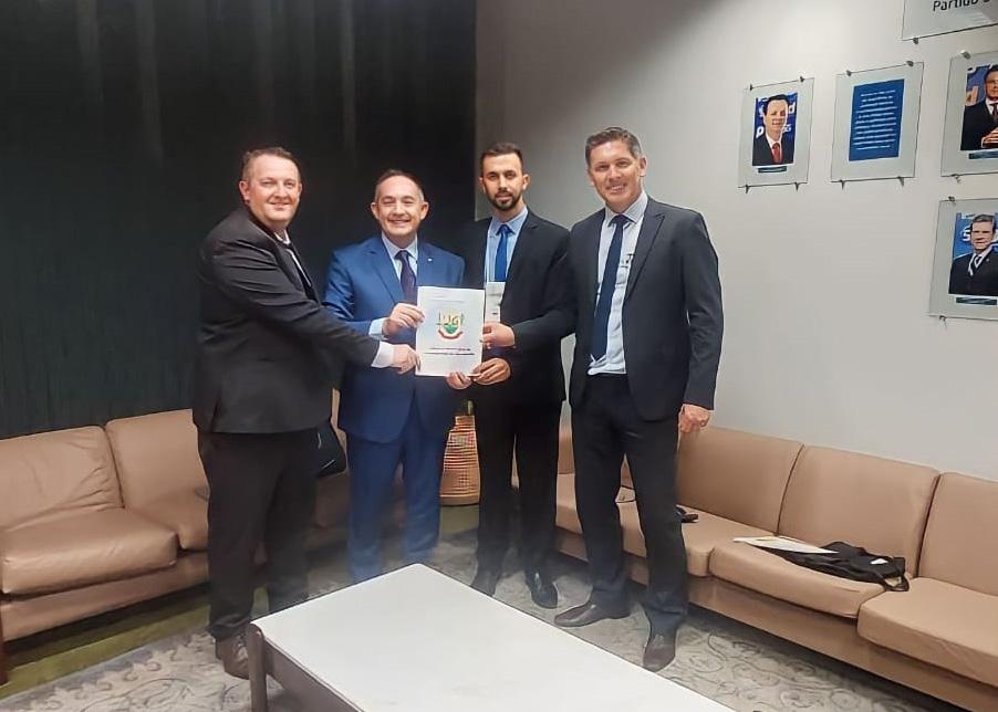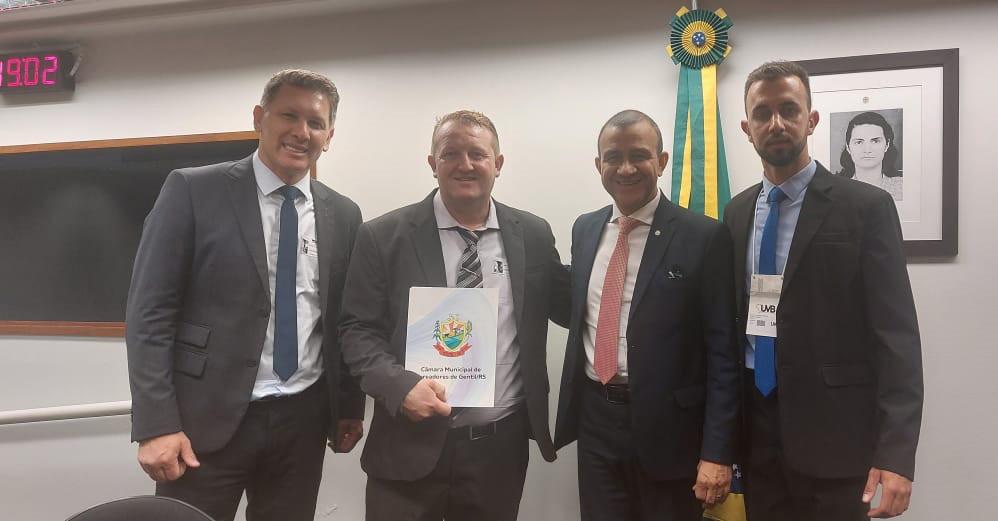 A viagem a Brasília rendeu boas expectativas de investimentos em projetos e programas para Gentil, além de um debate sobre os direitos dos agricultores na questão de demarcações de terras indígenas. O presidente da Câmara, Gustavo Pressi, PDT, e os vereadores da bancada MDB, Jair Tonin e Edson do Prado, cumpriram de 25 a 28 de abril, uma agenda de visitas e audiência com deputados estaduais e federais no Congresso Nacional – Câmara de Deputados e Senado Federal.