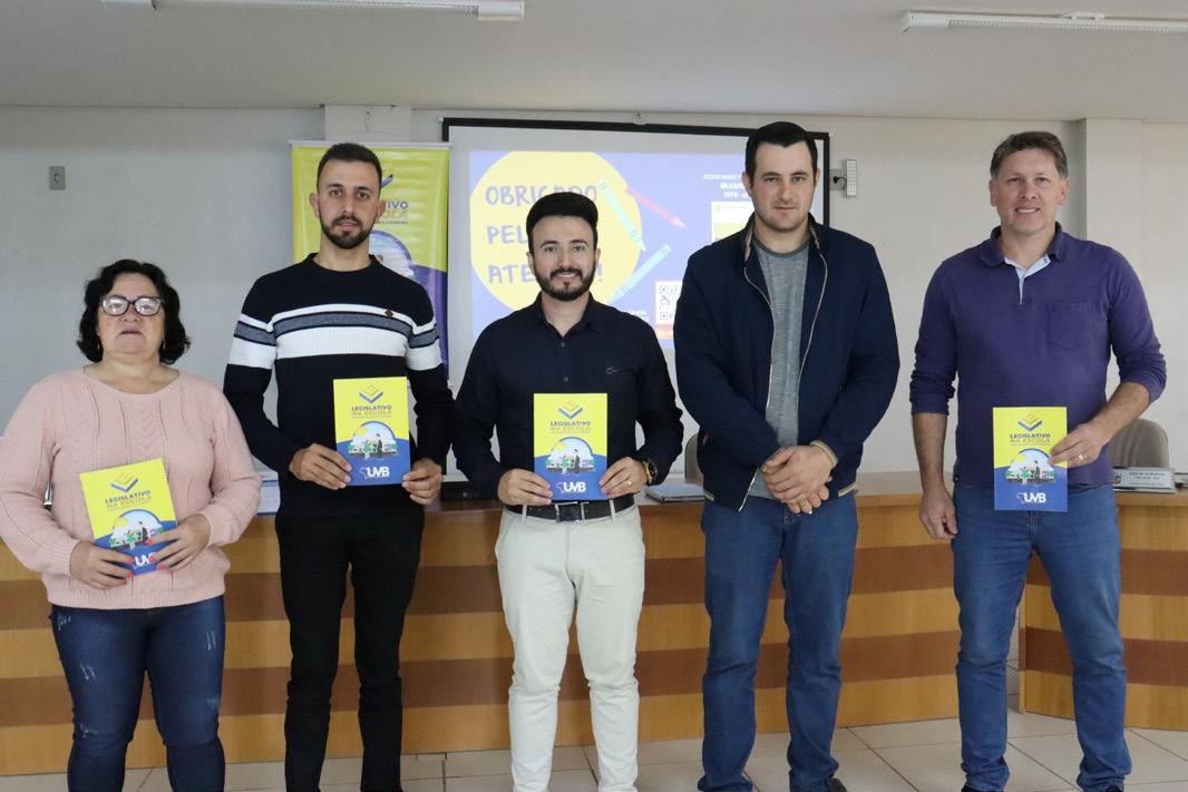 A educação política, social e cidadã trabalhada com jovens é uma iniciativa que reflete na sociedade agora e também prepara para o futuro. E neste sentido, a Câmara de Vereadores de Gentil em parceria com a UVB – União dos Vereadores do Brasil promoveram no dia 6 de julho, o Projeto Legislativo na Escola – Educação e Cidadania para Estudantes, para os estudantes do Ensino Fundamental e Ensino Médio da Escola Luiza Quittó Busnello. O presidente da Câmara de Gentil, Gustavo Pressi fez a abertura do evento dando boas-vindas aos alunos e professores e destacou sobre o interesse que o legislativo gentilense tem em levar educação política para os jovens. Também participaram da abertura da palestra o vice-presidente da Câmara, Evandro Biff, os vereadores Edson do Prado e Venilda Chisto, diretora da Escola, Lediane Botezini, vice-prefeito Adelar Silvestri e o prefeito Alcenir Dalmago. A palestra contou com a participação de mais de 70 pessoas entre alunos, professores e convidados.