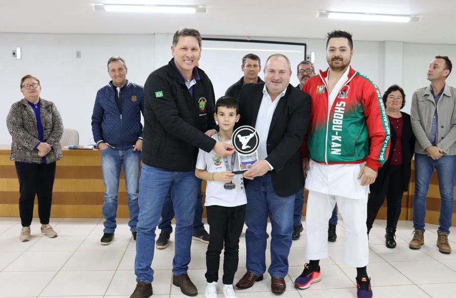 “Parabéns aos vereadores e ao presidente da Câmara, acho importante valorizar essa conquista. E aos alunos, continuem treinando bastante que com certeza vocês também podem ter muitas conquistas. Arthur, quando você subiu ao pódio e colocou a bandeira do município você estava representando todos nós gentilenses, parabéns”, destacou o prefeito Alcenir Dalmago. Participaram da sessão, além do vice-campeão, os alunos da Escolinha de Karatê, as famílias dos alunos, vereadores, secretários e assessores municipais.
