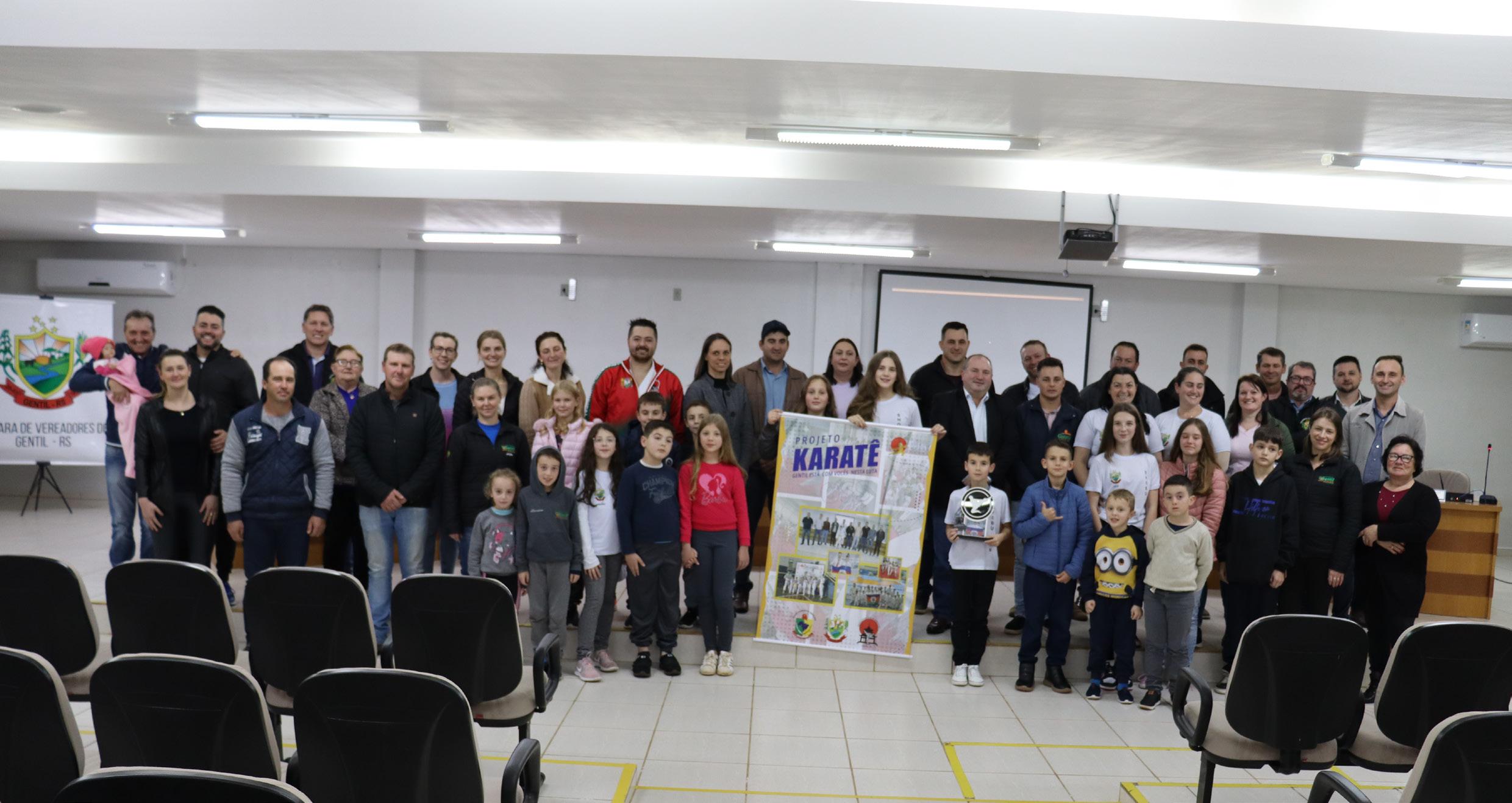 “A luta é levar a prática de esporte e incentivar a educação para o maior número de crianças com projetos municipais. E essa conquista é de todos que se sentem representados na vitória de Arthur. Estamos aqui hoje para reconhecer nosso ‘pequeno grande’ campeão, Arthur, é através de ti, de teus pais, dos professores, do teu empenho e dedicação que você conquistou o títuloAgradecemos a todos os pais que apoiam seus filhos - os pais são nossos primeiros professores -, a administração municipal e ao professor. Parabéns ao Arthur e aos colegas, sigam em frente que muitas outras conquistas virão. São vocês que nos orgulham e fazem a gente estar aqui lutando pelo futuro”, parabenizou o presidente Gustavo. O Projeto Karatê de Gentil é desenvolvido pelo Poder Público Municipal e visa fomentar a prática de esporte, possibilitar atividades diferentes em turno inverso e mobilizar o interesse dos alunos pela educação.