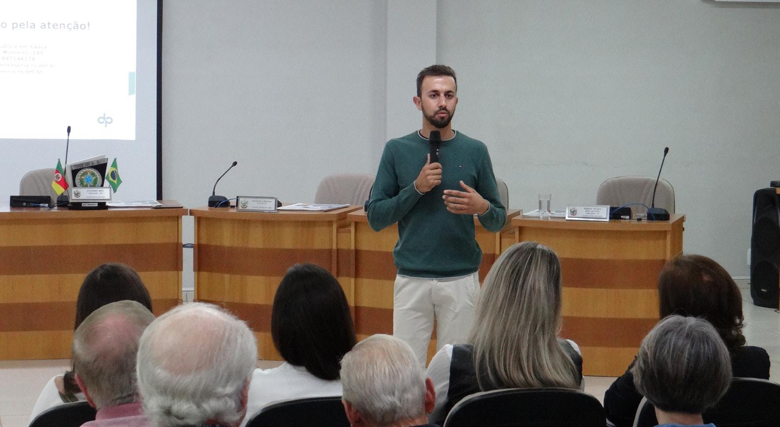 O presidente da Câmara de Gentil e da Associação de Câmaras da Região da Produção, Gustavo Pressi, fez a abertura do evento desejando boas-vindas ao público participante e enfatizou a integração apartidária entre os vereadores de todas as Câmaras, para que assim consigam trabalhar em prol do desenvolvimento regional. “Precisamos validar não apenas debates sobre os direitos das mulheres, mas também pensar estratégias que possam ser colocadas em prática em nossos municípios. Essa é uma questão de responsabilidade de todos os Poderes Públicos e a palestra foi sem dúvida muito esclarecedora. Quero agradecer ao palestrante Lucas, aos prefeitos, vereadores, vereadoras e a todo o público participante, nossa Associação é de união, integralidade e força para buscar o melhor para nossa região”, destaca o presidente da ACVP, Gustavo.