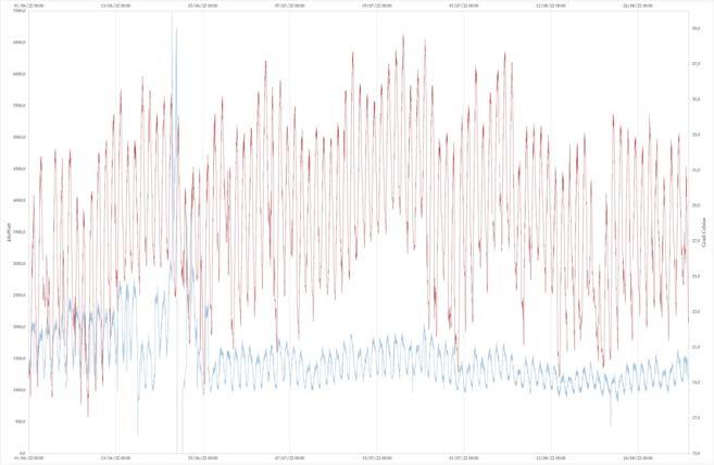 Tendenza delle interruzioni in relazione a carichi e temperature. Picchi di corrente repentini mettono in crisi la rete.