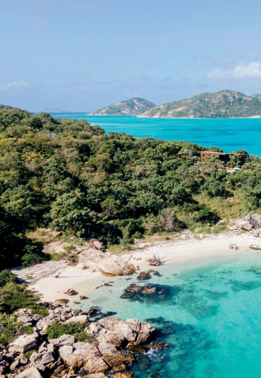 On theprevious page, a night viewofthevilla,designedby Australian studio JDACo. The Housewasbornfromthedesire of owners SteveandJane Wilson tocreate “theworld’s largestcoralreefhouse”.The house is built with durable materials designed to adapttotheisland’sunique environmentalconditions
