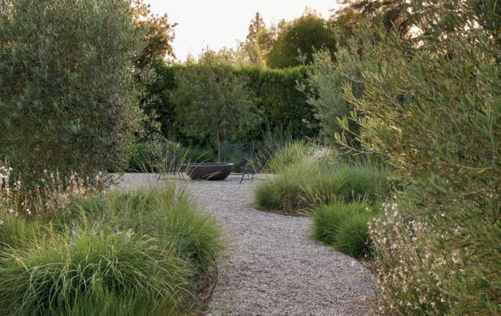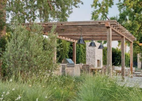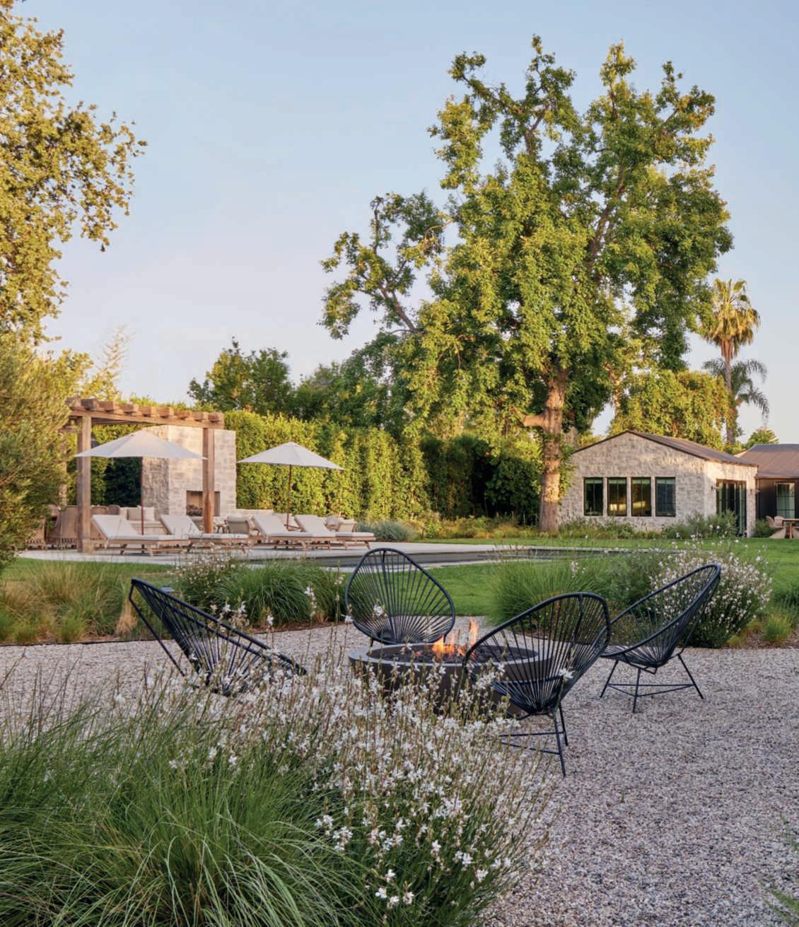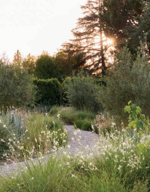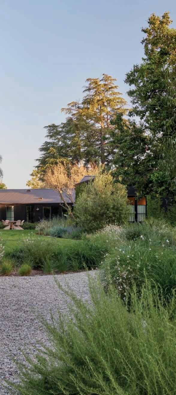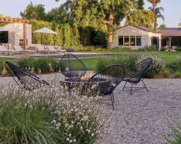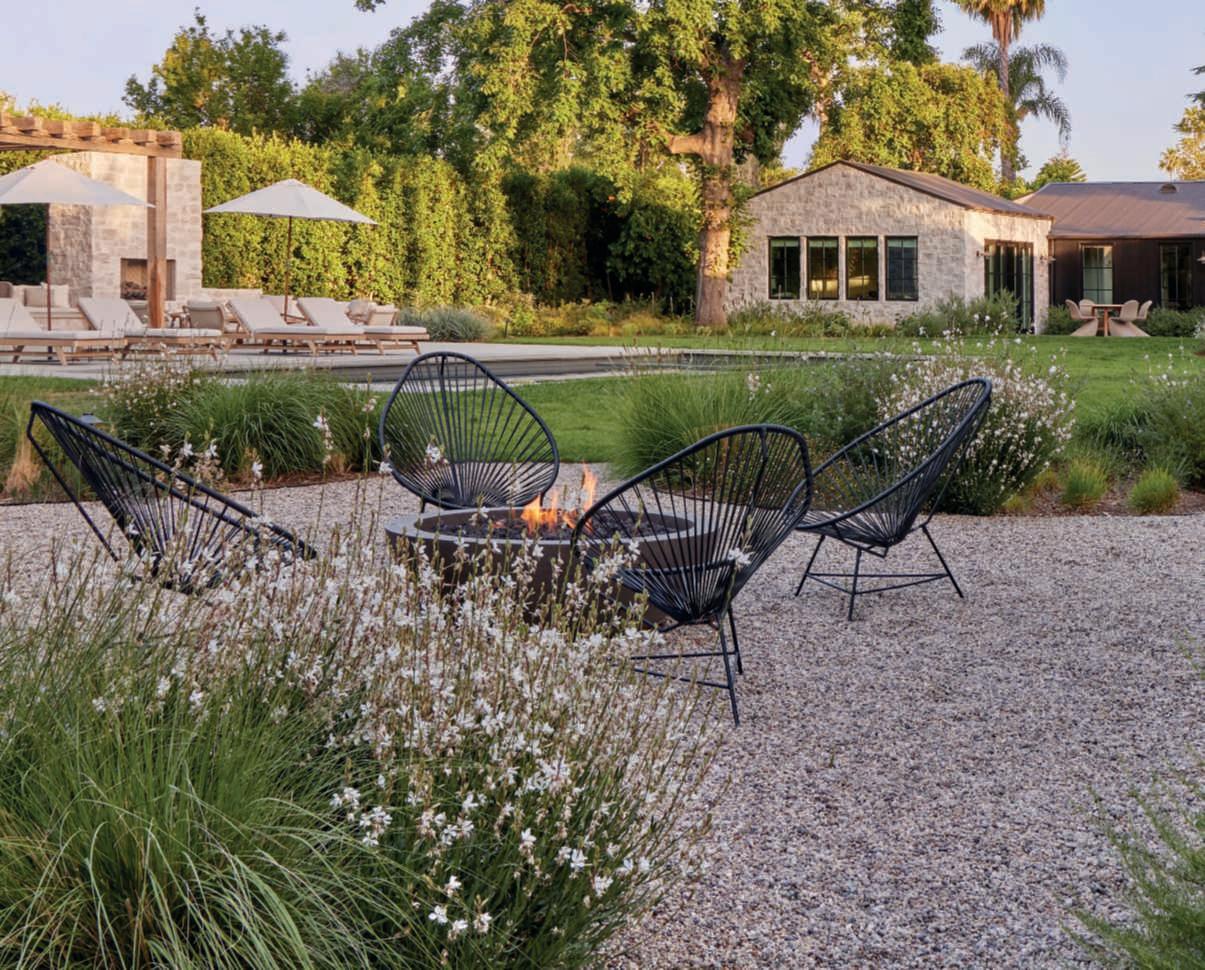 Rhamnuscalifornica,andWestringia‘WynyabbieGem’servingasabackdroptoFestucamairei,Carexdivulsa,Muhlenbergiarigens,afewMiscanthussinensis‘Adagio’,Erigeronkarvinskianus,Gauralindheimeri‘GeyserWhite’,andG.l.‘WhirlingButterflies’.Theseplantsarealsoincorporated intobedswithadditionssuchasPennisetumspathiolatum,Sesleriaautumnalis,Muhlenbergiacapillaris,andArtemisiacalifornica,complementedby accentsofAgaveweberiandRomneyacoulteri.Olivetreesstandoutinthe beds,elevatingtheviewpointandprovidingdiscreetcorners,especiallyone with Acapulco chairs and afirepit creating atranquil space for relaxation. RyanGutierrezhascreatedarefinedgarden,designedforbothentertaining and being entertained, where the mind can rest and the soul renew, expressing a visionof Eden with emotionally captivatingvisual beauty. ■
