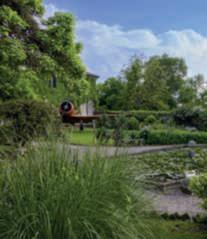 is,asalways,crucial;Ioftenfeeltheneedtosoftenandmakethelineslesssharp, todampenthegeometry.Symmetry,whenintegratedwithcareandthejudiciouschoiceofsuitableplants,contributestocreatinganorganized,elegant, andbalancedgardenthatsimultaneouslyimpartsapleasantsenseoftranquility.Inlongandnarrowspaces,symmetryaddsafascinatingandsophisticated touch,suchasthelongmirroredborderswithshrubs,herbaceousperennials, and grasses orderly replicating to create very suggestive paths. In these cases, I softentherigidityofthelinesthroughfoliageanditstextures,payingparticular attentiontotheintroductionofverticalelementsthatbreaktheoverlyformal horizontalpatterns.Theaimistocombineformalsymmetrywiththevitality anddynamismofverticalelements,creatingagardenthatnotonlyshinesforits geometricbeautybutalsoinvitesexplorationandappreciationofvarietyand balanceinitsstructure.PlantslikeAllium,Agapanthus,Digitalis,Delphinium, Penstemon,Verbenabonariensis,Filipendulavenusta‘Rubra,’Macleayacordata,alongwithsomegrassessuchasCalamagrostisxacutiflora‘KarlFoerster,’ Panicumvirgatum,Andropogongerardii,andStipagigantea,proveperfectfor creatingmovementandharmonizingperspectivesthatwouldotherwiseappear flatandlessengaging.Inkeytransitionpoints,Iliketouseformalspheresof boxwoodoryewasfocalpoints,especiallyeffectivewhencreatingaclearcontrastwiththefreerformsofwhatisaround.Finally,whenrefiningthedetails ofproportionsandsymmetries,Ialwaysapplytheprincipleofthegoldenratio. Thisexactproportion,foundinnatureandsinceancientGreeceindesignand thearts,bestowsaprofoundharmonytotheperceptionofformsinourminds.It isafascinatingaspectwhoseperfectionseemstoaffirmthemysteriousconnectionbetweenmanandGod,ormoresimplybetweentheuniverseandnature. ■