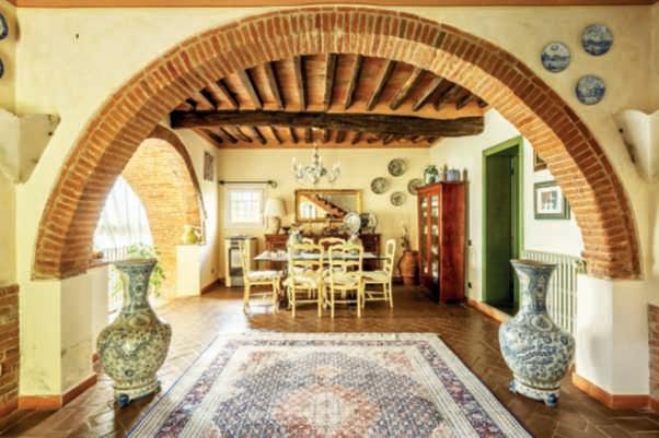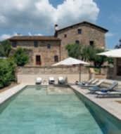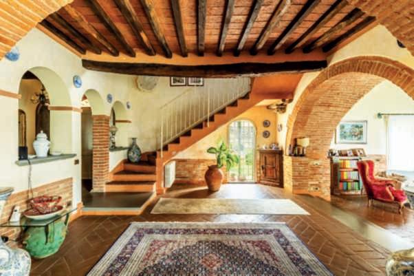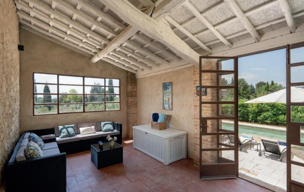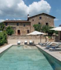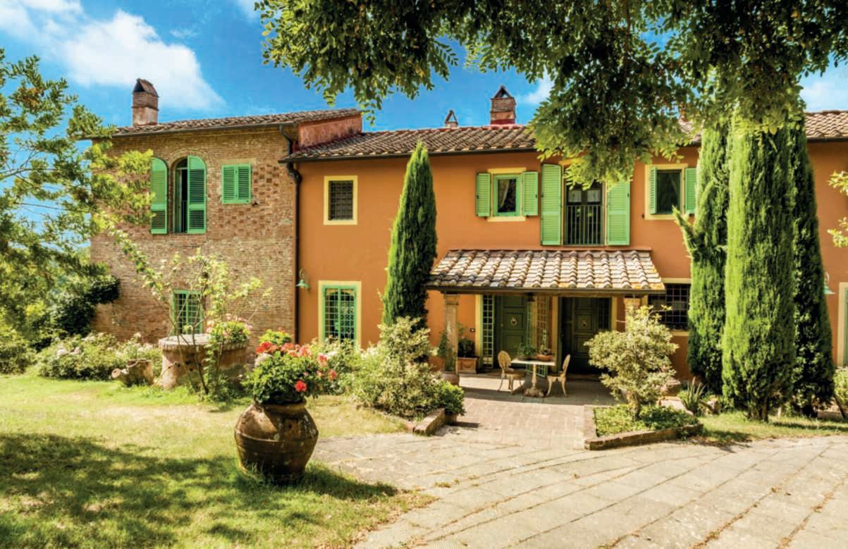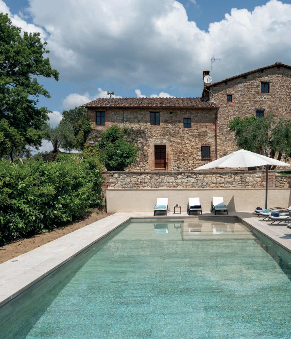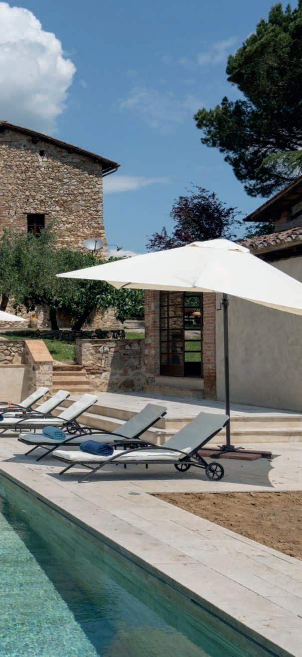 In questa pagina e nelle precedenti,un casalecon piscina adagiatosuuncolle a CastelnuovoBererdenga (Siena),trailtorrenteMalena eil fiumeOmbrone, nella zona vinicola Chianti Nellapaginadidestra,gliinternidiunaltro casaletoscano,a Radicondoli(Siena)