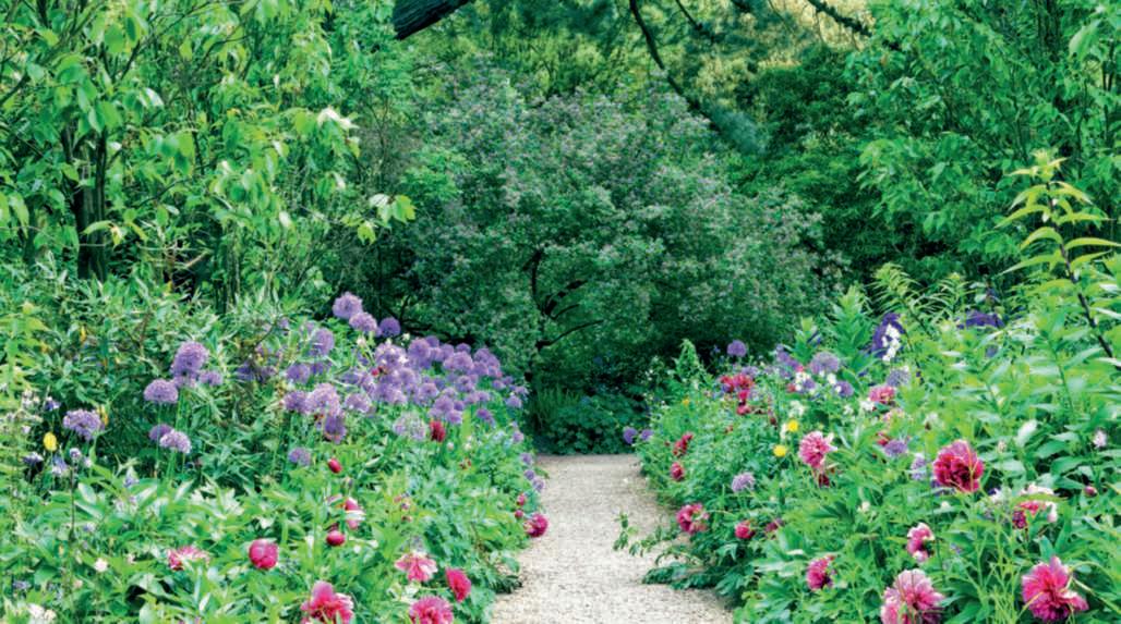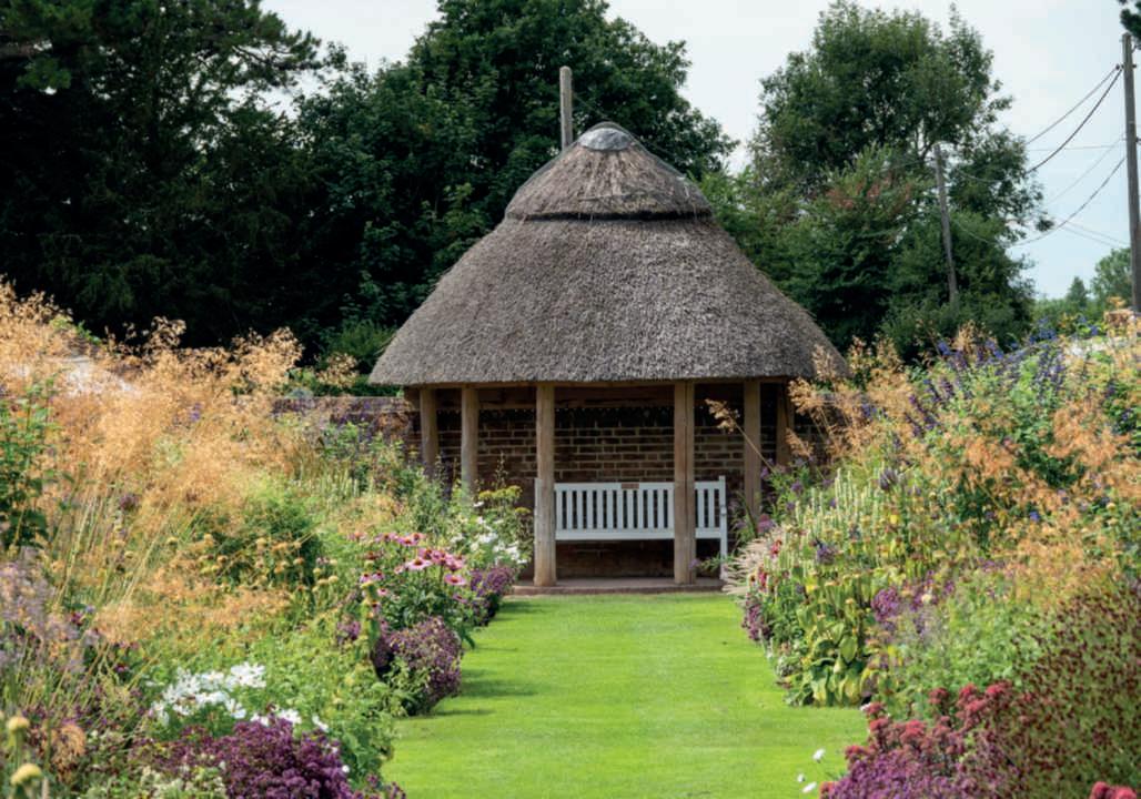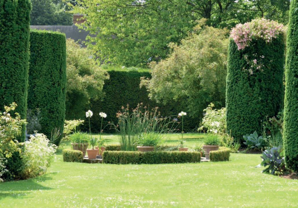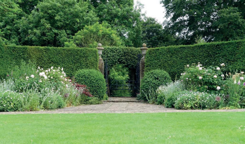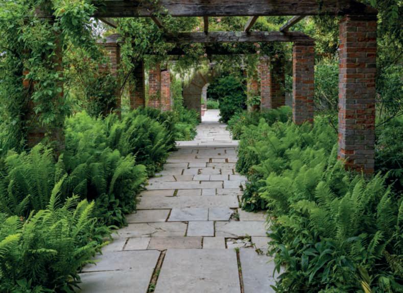 Onthispage,above,a modern doubleborderwithgrasses and herbaceousperennials standsout; below,the rosepergolaflankedby Onocleastruthiopteris,andonthe rightpage,asectionofthe formal garden at LeBoisdesMoutiers, VarengevillesurMer,Normandy. Ontheprecedingpages,onthe right,above,the symmetricalborder beneaththemetalarchesin ClosNormand,thegardeninfrontof Claude Monet’shouseinGiverny;below,a symmetricalborderwith Allium and herbaceouspeonies;ontheleft,the symmetryofaclassicalgarden