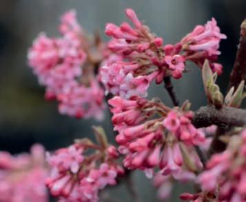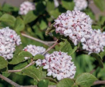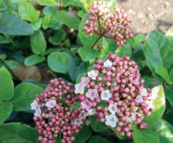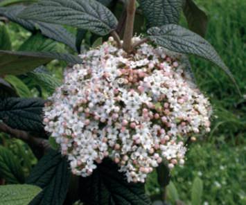 Nonsipossonononcitareilmagnifico V bodnantense ‘Dawn’dallaaggraziatafioriturainvernalerosasuramispogli,abbondantee intensamenteprofumatanèV. farreri chefiorisce,ancheluiprofumando,danovembreecontinuafinoamarzo.Meritaunamenzione speciale V sargentii ‘Onondaga’,lecuiparticolarifogliesoffusedi marroneerosseinautunnoeleinfiorescenzepiatte,congrandifiori sterilidispostiall’esternoefiorellinifertiliall’internochesiaprono dabottonifioralirossobordeauxmantenendounatonalitàrosata,lo rendono uno spettacolo indimenticabile.