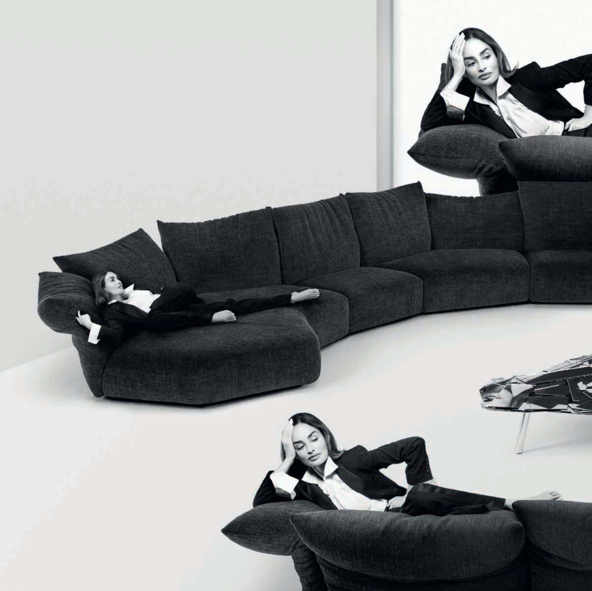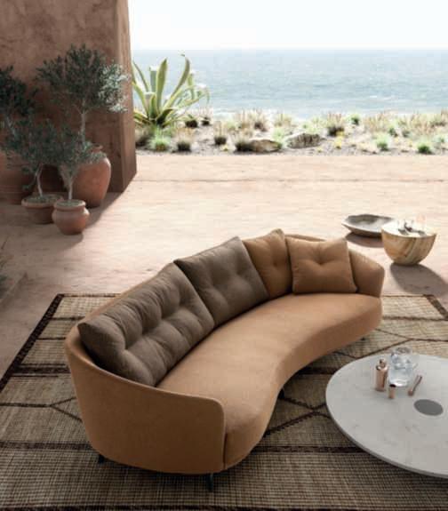 Angel è una collezione completa di sedutediningeloungeconcuscineria dedicata,acuisiaggiungonocoffeetable etavolidivarieformeedimensioniche possonoospitare fino a8 posti. Il design, morbidocon curve grafiche,èfirmato Angeletti & Ruzza.