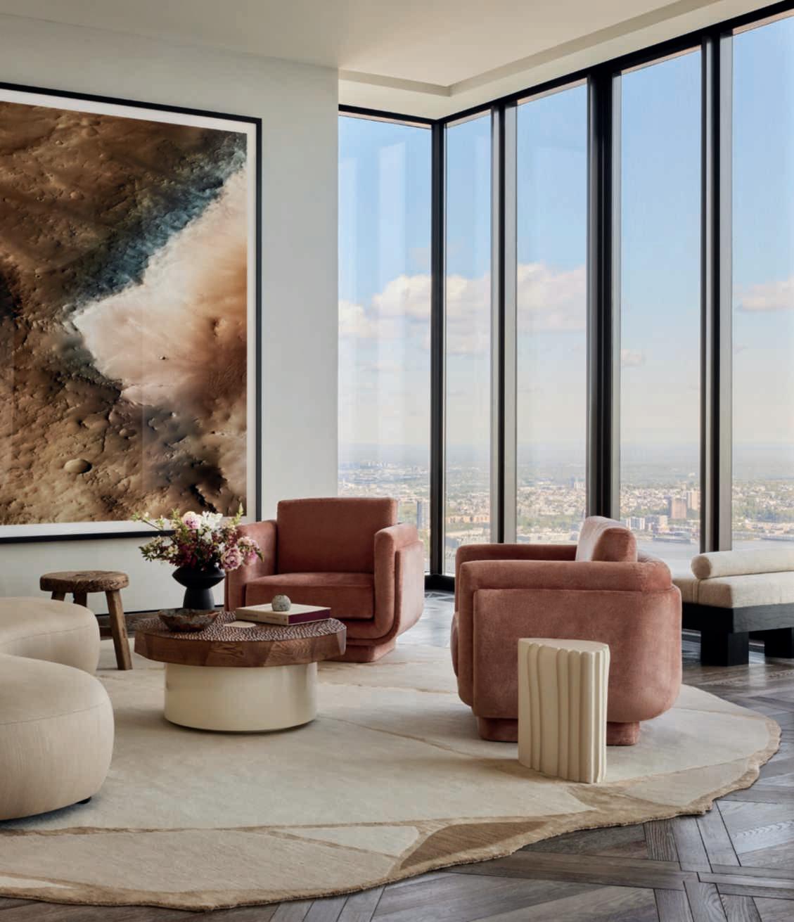 A step away from the sky. The London-based studio Banda, led by Edo Mapelli Mozzi, has signed the interior design project for a luxurious penthouse on the 76th and 77th floor of a New York skyscraper with a breathtaking view of Central Park