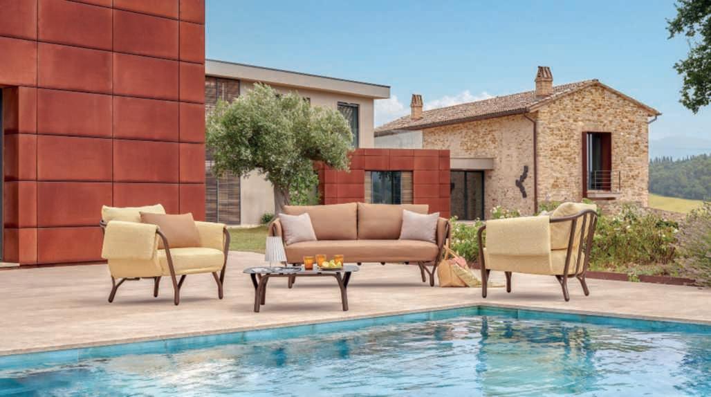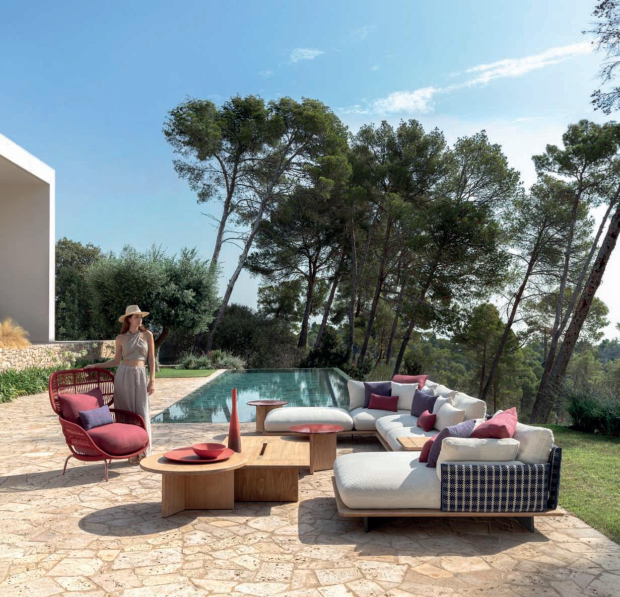 Disegnata da Christophe Pillet, Ever èunacollezionedi sedute,mobiliecomplementi incuiillegnoelapietralavica siincontranoperdarevita a un concept moderno ma d’ispirazioneclassica.Una propostacompleta,ideale percreareareelivingedining openairche,comesuggerisce ilnome,èstatapensataper sfidareiltempo. Questo grazie auna linea fluida ed essenziale,allemorbidecuscinature e a unapalettecromaticaorientata versosfumatureneutreetinte naturali,ingradodiadattarsia ognicontestooutdoor.