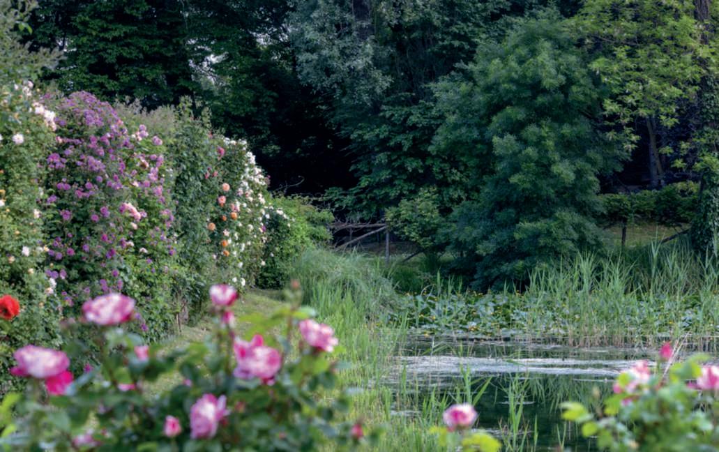 Un’affascinante collezione di rose antiche emoderne impreziosisce unparcoeclettico dicircatreettari, che ospitaanche importanticimeli