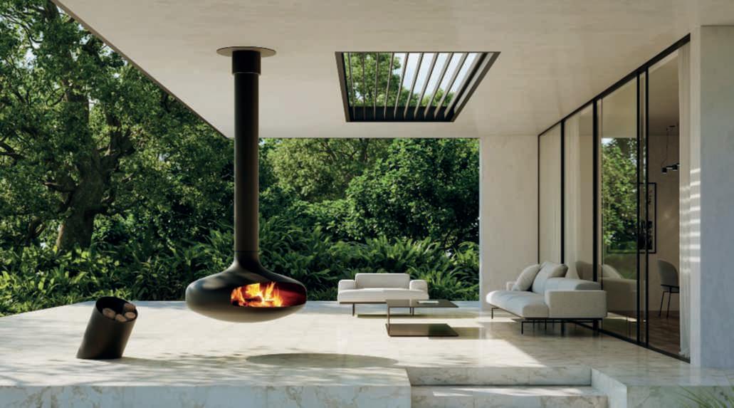Domofocus outdoorversion. Likeall outdoormodels,thefireplace benefits from an anti-corrosion treatmentthatprotectsitfromthe elements.Available in matte black or rustfinish.Perfectly compatible for cooking.