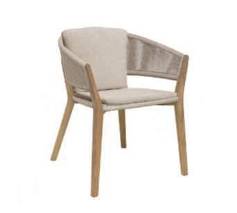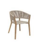 Lasedia Carés combina armoniosamente il teak, gli affusolatiprofili delle gambe e la fibradiTextilene.