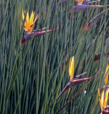 Menoconosciutaè Strelitziajuncea ,un’erbaceaperennarizomatosachehaunaspettospiccatamentediversodallealtre.Sidistingue perisuoipicciolifogliarisimiliagiunchi,prividilamina,cheoccasionalmentepossonopresentareall’apiceunapiccolafogliolina, mentrelesueinfiorescenzesonosimiliaquelledi S . reginae,ma trovandosisupicciolipiùbassicreaunparticolareeffettoornamentale‘vedo-non-vedo’.Ancheleipuòraggiungerel’altezzadi circa duemetri. ●
