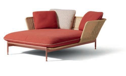 Lovebed della collezione Esosoft Outdoor con schienale che rievoca il vimini. DesignAntonio Citterio.