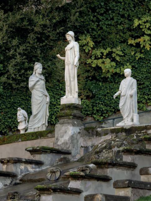 Mirabilesintesi di stile formale italiano e teatralità barocca, i Giardinidi Palazzo Colonna sul Colle delQuirinale narrano la storia di una prestigiosa famiglia dell’aristocrazia romana