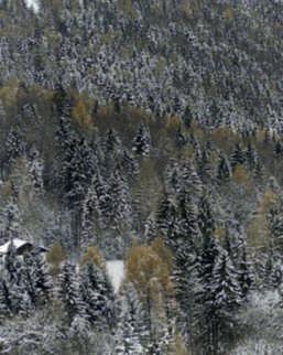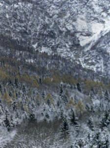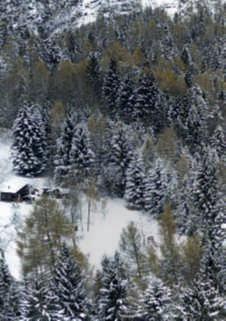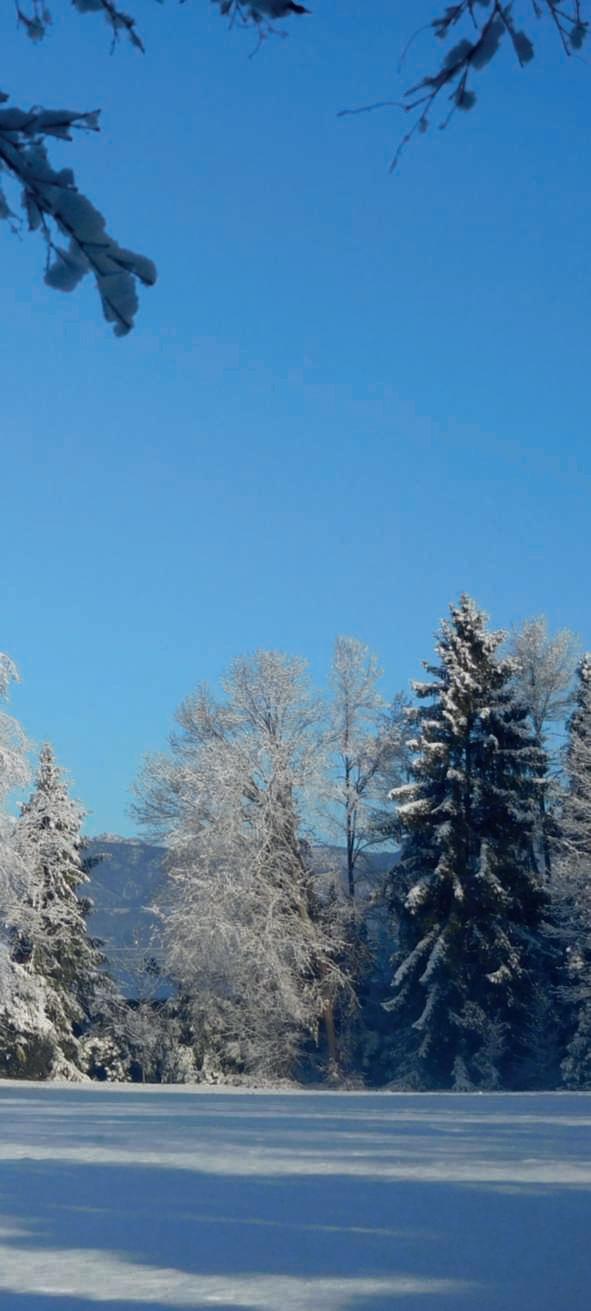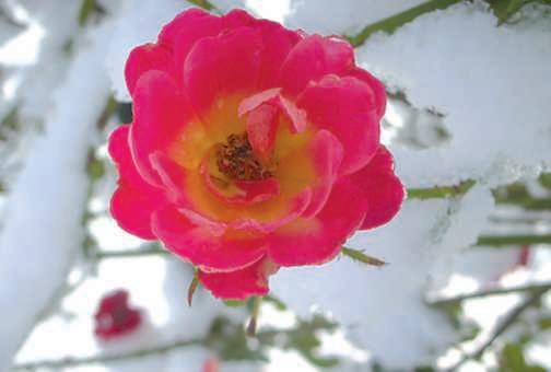 In questepagine, una veduta delparcoinnevatoconal centro due dei suoi grandi alberi, Fagussylvativa var purpurea e Quercusrobur. Nellefotodidestra la neve e la brinarivestonoeorlanola vegetazione.Dall’altounarosa rossa che coraggiosamente aprelasuacorolla,bacche rossediagrifoglio e cinorrodi diuna Rosacanina
