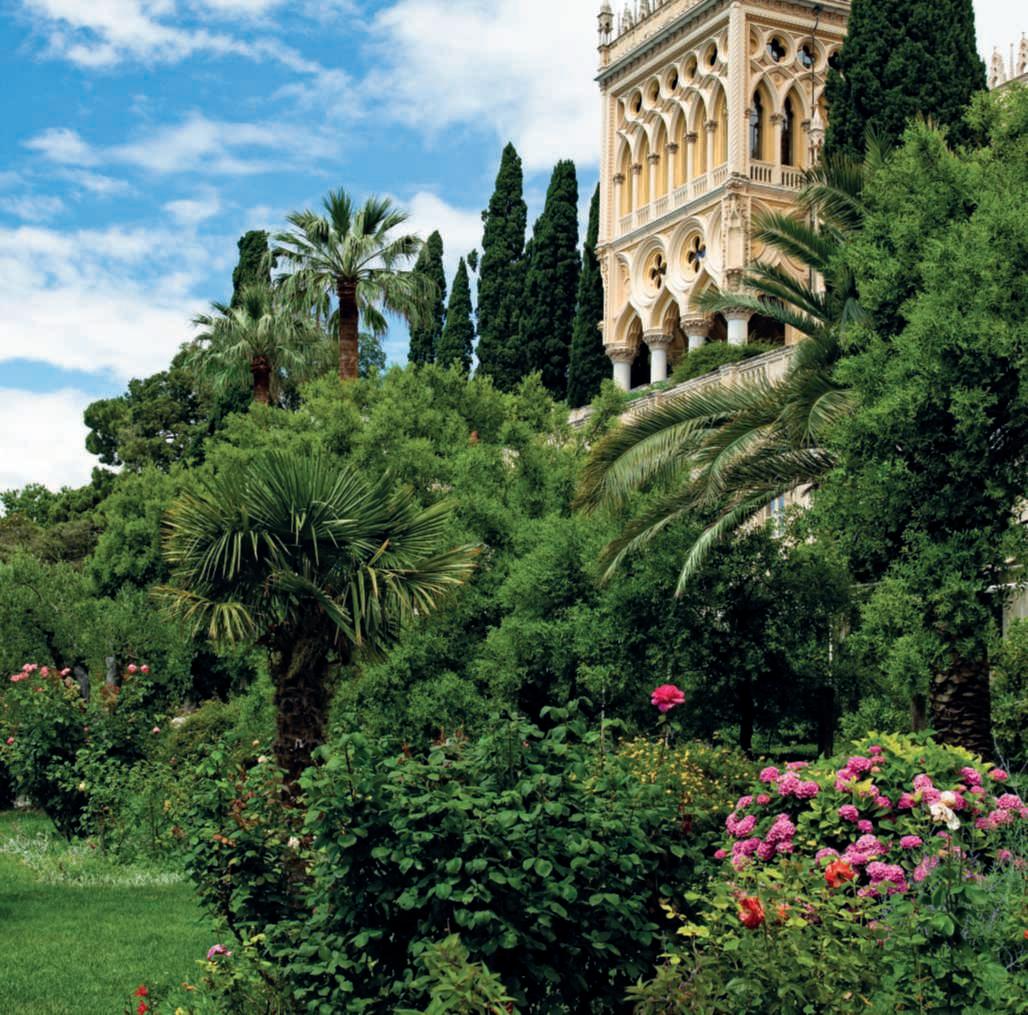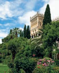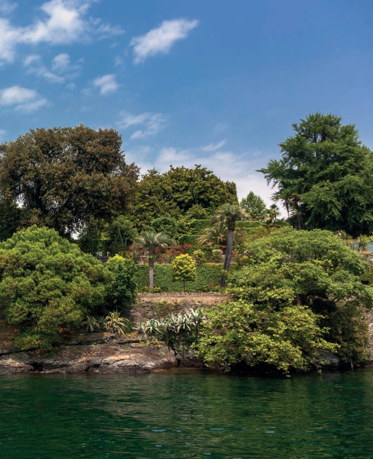 Giardinirigogliosisottrattiaunoscogliocheaffiora dalle acque turchesi del più grande dei laghi subalpini,unameravigliosavillainstileneogoticovenezianoeunastoriamillenariacheraccontadisanti,frati, poeti,artisti,avventurieriearistocratici.AIsoladel Gardalanaturaavvolgenelsuoabbracciochisitrovaacamminare all’ombradellegrandichiomedeglialberi,ammiralospettacolodel lagoosilasciatrasportaredall’inebrianteprofumodizagare,glicinierose.Improvvisamenteiltemposiferma,ilmondosiallontanalentamenteeunaconnessioneemotivasistabiliscetral’uomoe l’isola.FuforsequestaatmosferadipaceaindurreSanFrancesco d’Assisiacostruirviuneremo?SanBonaventura,suobiografo,non loscrissemadocumentònelDuecentol’esistenzasull’isoladiuna piccolacomunitàcontemplativadell’ordinefrancescano.Durante glioltrecinquesecolidipermanenzadeifrancescaniiniziaronoa svilupparsi giardini di cui oggi non rimane traccia. Nei periodi successiviivariproprietarichesisuccedetteroebberocuradisviluppare contemporaneamenteallavillaancheilparco,facendocostruireuna seriediterrazzechedigradanodolcementeversoillagoperottenere areepianeggianti,proteggendoledaiventitramitegrandimuracon merlaturaghibellinanellaparteorientaledell’isola.Lavillaattuale, instileneogoticoveneziano,tipicodeipalazzidellaSerenissima,fu volutadall’arciduchessarussaMariaAnnenkoff,figliocciadellozar AlessandroIIemogliediGaetanoDeFerrari,chenel1870acquistò l’isola.LaproprietàdaiDeFerrarisitramandòperviafemminile agli attuali Cavazza che sono la quinta generazionedella famiglia. Nelsuocomplesso,l’isolaospitaunaseriedigiardinichesirisolvono inunostileeclettico,conunequilibratomixdipianteautoctoneed esotiche,echesonounadirettaconseguenzadellaconformazione delluogoedelgustodeiperiodineiqualifuronosviluppati.Piùformalineipressidellavillaperdiventarepoipaesaggisticinellaparte dell’isolachesiallungaversoilpromontoriodiCapoSanFermo, sullaspondabrescianadellago.Lapartepiùscenograficaèunaterrazzapensile,doveeleganti parterredebroderie in bosso, di forme differentisialternanoadaiuoleinerbite.Icipressiritmanolospazio delle terrazze e tutta l’isolafino alla sua punta. l