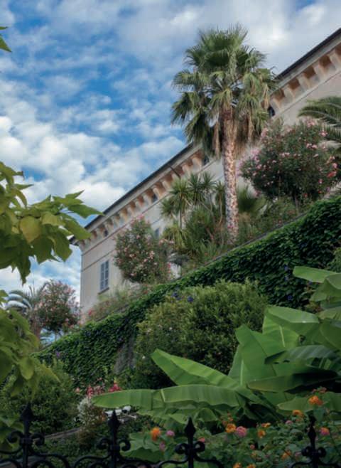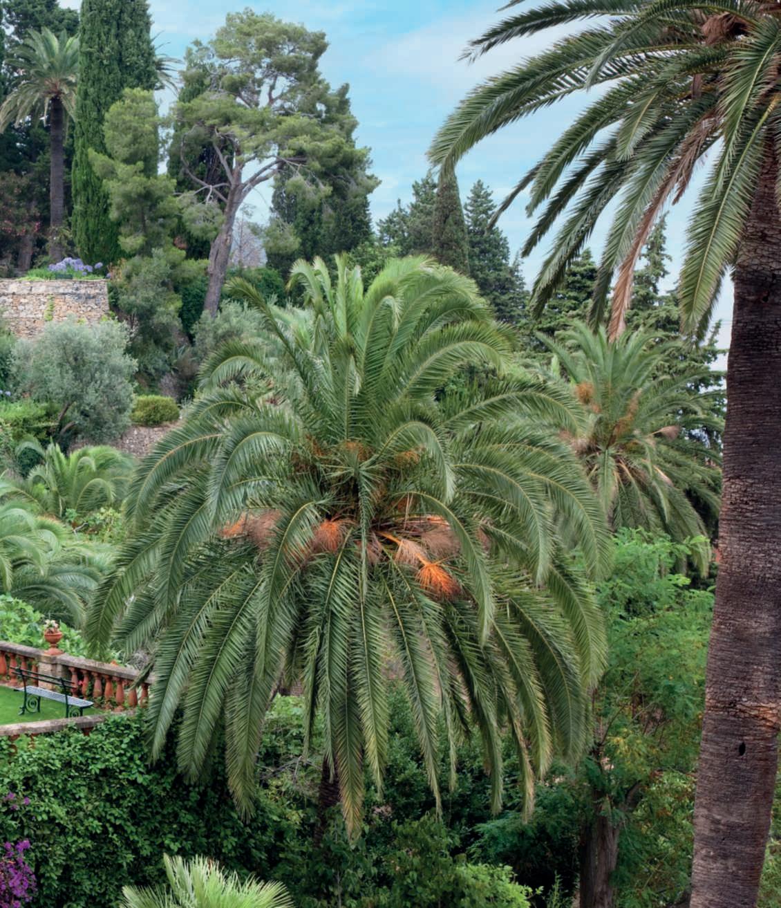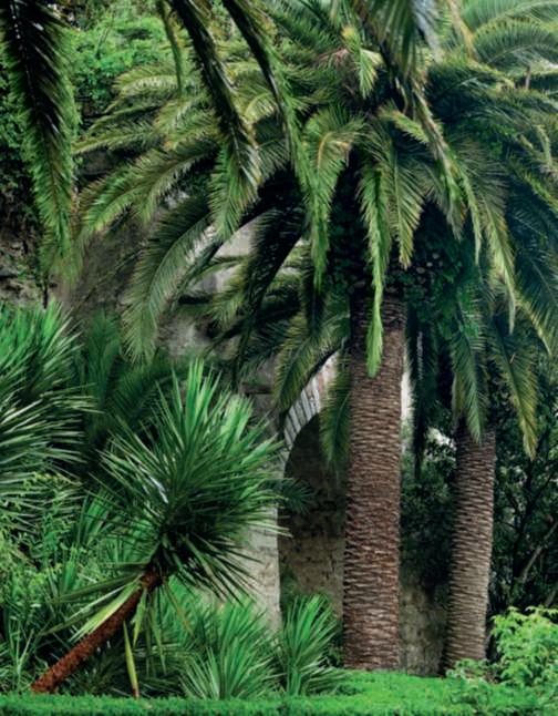 e Phoenixcanariensis sfondoil palazzo ela cipressiedue Washingtonia filifera.Nellepagineprecedenti,unavistad’insiemedella villa costruita dai De Ferrari in stile neogotico veneziano edeisuoigiardini,chesi leggonochiaramente. Abordolagoilgiardino