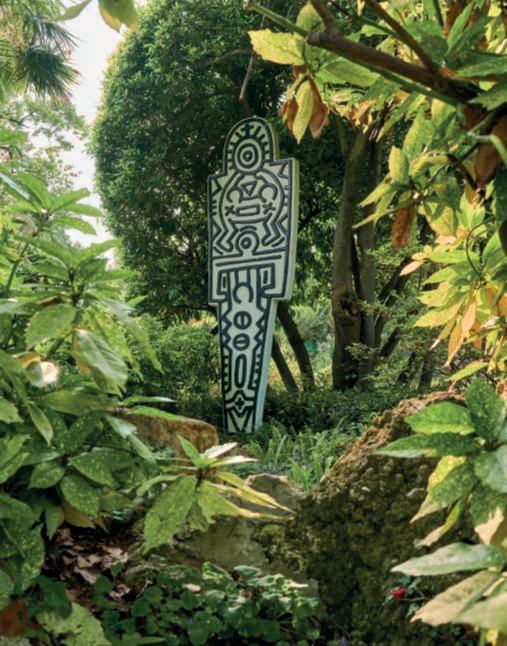 Nellapaginadidestra, in alto, asinistra, LePiramidi di Roy Lichtenstein (1923-1997), che l’artistarealizzò per la rappresentazione dell’Aida a ParigicuratadaAndréHeller; inalto,adestra, Totem di Keith Haring (1958-1990).