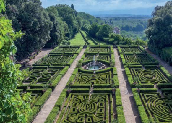 Inquestapaginaunaspettacolarevedutapanoramicadelgiardinoall’italianadi Castello Ruspoli, Vignanello (VT). Foto di Dario Fusaro