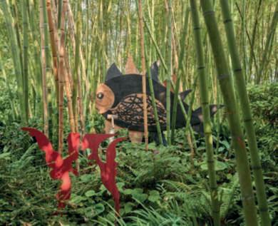 In questa pagina, in alto, MostriSputanti di André Heller; quiasinistra, Tuffatori suColonne di MarianoFuga; inbassoasinistra,l’opera di RudolphHirt,ispirataa Oannes, secondolamitologia babilonesediodelle acque; in inbasso,adestra,insecondo piano, Comesonobuonigli uomini di FrancescoLevi