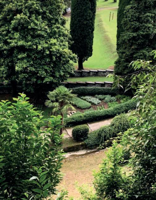 collocatoabrevedistanzadalVialedell’Ercole,comeènotooggil’asse prospettico.Inquest’ottica,ilversantedellacollinaconlesueareenaturalieselvaggerievocalapoeticadelsublime.DuranteilRisorgimento, ilBaroneIppolitoCianiincrementòilpatrimoniobotanicodelgiardino mediantel’inserimentodipianteesotiche,soprattuttoalberi,oggimaturiesemplarichesipossonoammirareintuttalalorobellezza.Fece anchecostruireunnuovoedificio pieddansl’eau peravviareun’attività alberghieraechenominò HoteldelaReined’Angleterre in omaggio a CarolinadiBrunswick.Nel1873ungruppodiimprenditoriacquisìil complessopertrasformarloinunalbergodipregio,compiendoimponenti opere di adeguamento e trasformazione della villa principale. Ilparcooggièilcoronamentodiquesteresidenzeeillagoèiltraguardodiognicannocchialeprospettico,inquadratodiversamentedaiviali cherisalgonodolcementeversolacollina,losfondonaturaledelViale dell’Ercole o del tempietto di Telemaco o del Mosaico, comeè chiamato il ninfeo, è un luogo davanti al quale rimanere incantati sostando sulla terrazza o passeggiando lungo il suo percorso,con lo sciabordio dell’acqua come sottofondo. Nel corso dei secoli, ma soprattutto dell’ultimo, è statocompostounvirtualepercorsoolfattivocheaccompagnadelicatamenteilvisitatoredelleareepianeggiantiinunasuccessionediprofumi lungo l’arco delle stagioni, dal glicine, alle rose, ai pittospori, ai tigli, ai Trachleospermumjasminoides,alle Magnoliagrandiflora,apiùspeciedi osmanto.Sedaunlatol’esigenzadiaveremacchiecoloratevienesoddisfattaconpiantestagionalidall’altroanchegliarbustidafioreconcorronoacrearla,ainiziaredaiprimacitatiglicinierose,percontinuarecon azaleeerododendri,camelie,piùspeciediortensia,abelia,oleandri, Lespedezathunbergii,percitarnealcuni,epureglialberifannolaloroparteconippocastani, Liriodendrontulipifera emagnolie.Proprioglialberi sonolacomponentechepiùincanta,inun’alternanzadisempreverdie decidui,declinatiinpiùcromiediverdi:sonoigrandiprotagonistidel parco.Ippocastanipunteggianoillungovialediaccesso,tiglilaterrazza, platani,dicuiduemonumentali,sorveglianoilPadiglionedellaRegina (come ora è chiamato l’Hotel de la Reine d’Angleterre)ealtripunti, Magnoliagrandiflora accompagnano verso il Mosaico e si sono aggiunteaicipressilungoilVialedell’Ercole,insiemeailecci, Pinusnigra si mescolanoa Ginkgobiloba, Chamaecyparislawsoniana, Liriodendron tulipifera e altri in più gruppi arborei ben distribuiti, a incorniciare puntidiparticolareinteresseoppureaincanalarelevisteversoaltriluoghi oancoraaformarequinteverdiedessistessifondaleprospettico.Molti concorrono a crearelo spettacolodel foliage autunnale. Percorrendoisentiericheconduconoallefortezzeealletorri,inalto sullacollina,glialberipossonoessereapprezzatiintuttalaloroimponenza,altezzaeampiezza.Daquisipuòleggerechiaramenteildisegno delgiardino,tuttovienemessonellagiustaproporzione,pienievuoti acquistanounsenso,sicoglielacontrapposizionediportamentiverticaliedespansi,sipercepisceilgiocodellalucecheproiettaombreo illumina,mutainclinazioneeprimadeltramontosiammantadirosa. Mentresiprocedelungoilcamminoecisifermaaguardareilpanoramaunasorpresasisuccedeall’altra:orasiscorgelarivadiCernobbio, oralacittàdiComoconlacupoladellaCattedrale,oraBrunateelesue villelibertyoilfarodiVolta,oralevillesullarivaopposta,oral’abitato diBlevioeleripidemontagneallesuespalle,masempreecomunqueil lago,primadiognialtro.Qui,eovunquenelparco,immersinelsilenzio, iltemposembrarallentareesipuòentrareincontattoconilverospirito del luogo. ●