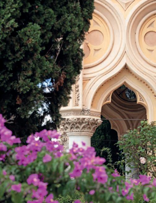 affacciato sul mare. I pinnacoli eilbalconesonostatidisegnati da FrankBrangwyn.Questo spazioèlareinterpretazione di ‘TheAngelInvitingDanteto Enter the Fire’,di William Blake,oggialNationalGallery ofVictoria,Melbourne. Definita da Goethe“ilpiù grandecapolavorodell’artee dellanatura”, Taormina è il luogo in cui il pittoreinglese Robert Hawthorn Kitson scelse di vivereedovefece costruire CasaCusenieisuoi giardini,realizzatisu dieci livelli otodiDarioFusaro ArchivioGrandiGiardini Italiani