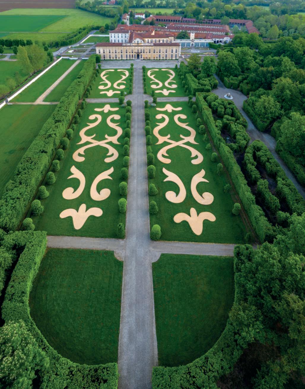 Inquestapagina, il parterre diVillaArconati diBollate (Milano).Nellapaginadi destra,unoscorciodelTeatro diVerzuranelparcodella Villa Reale di Marlia (Lucca). Fotodi DarioFusaro, ArchivioGrandiGiardini Italiani