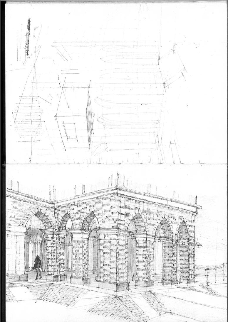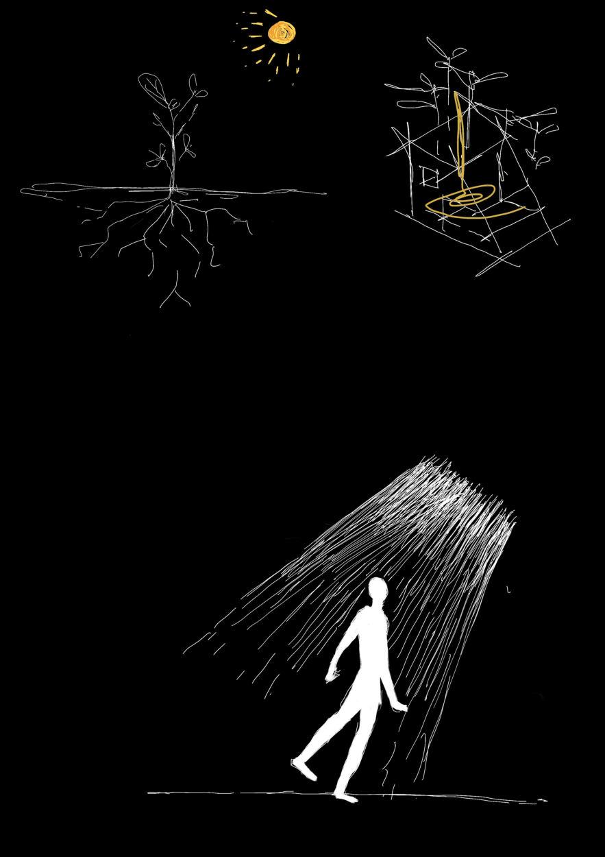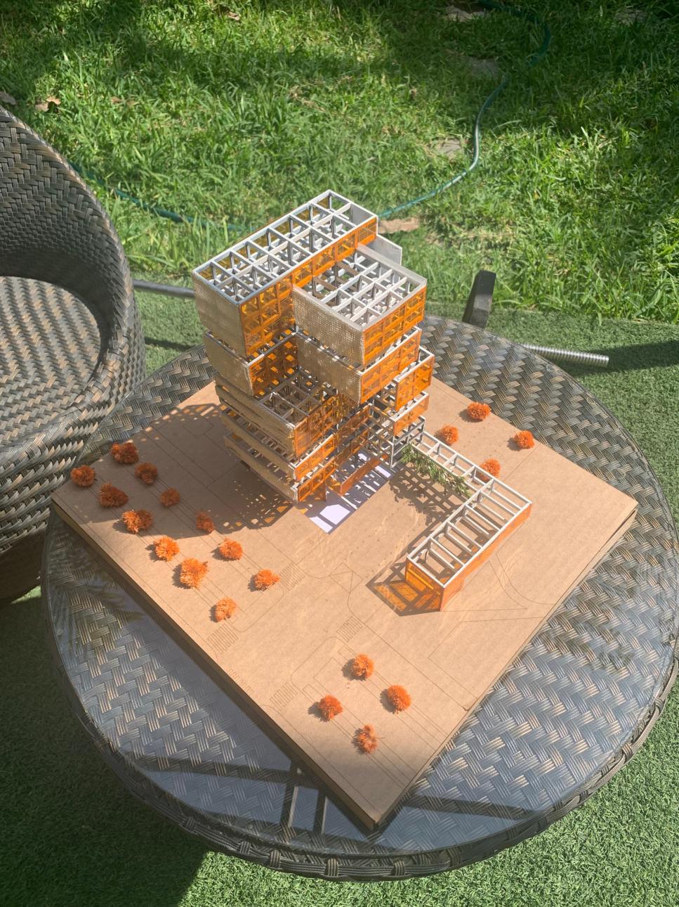 Para la elaboración de este ejercicio, el cual consiste en crear una maqueta escultórica/conceptual, era indispensable una historia o rito que exija la necesidad de un espacio de reunión/celebración. Como requisito, debía surgir una estructura ligera a partir de una base maciza trapezoidal.