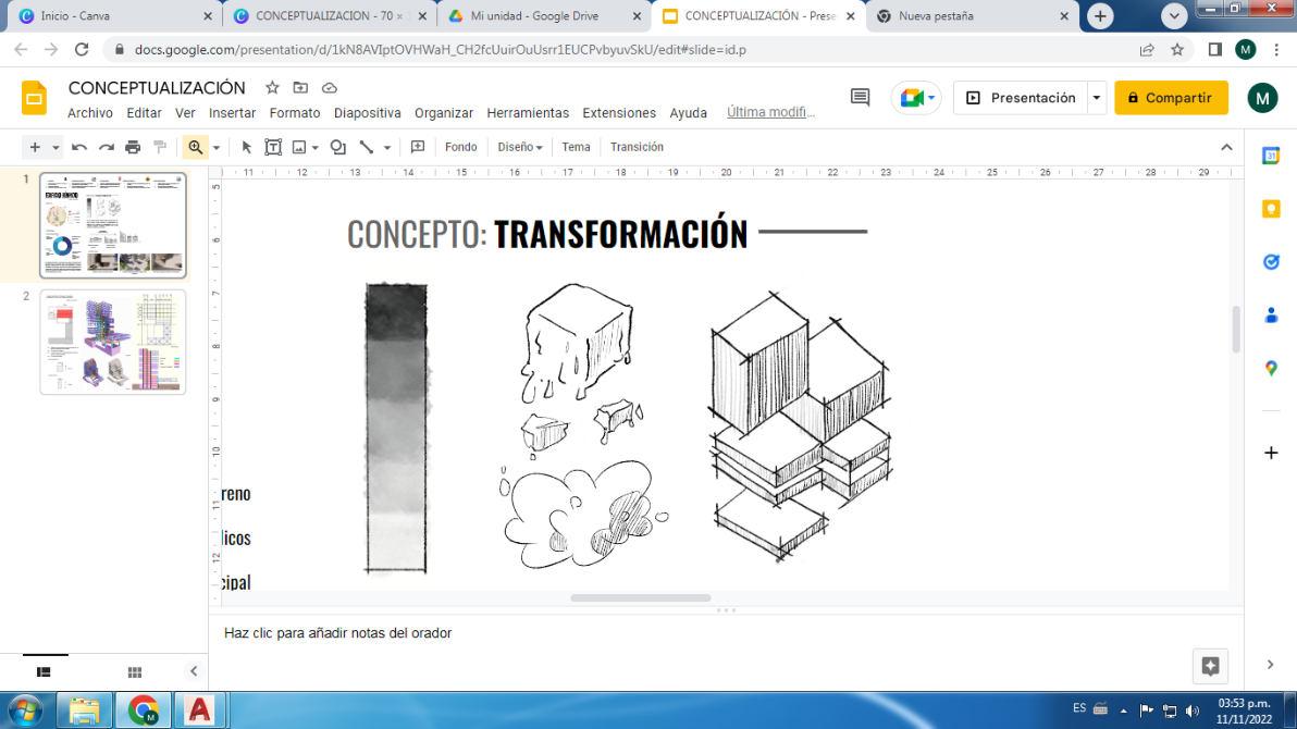 Este proyecto, el cual fue uno de los iniciales en la carrera, me permitió explorar de manera más genuina el espacio, vacío y la forma, además de familiarizarme con herramientas digitales.