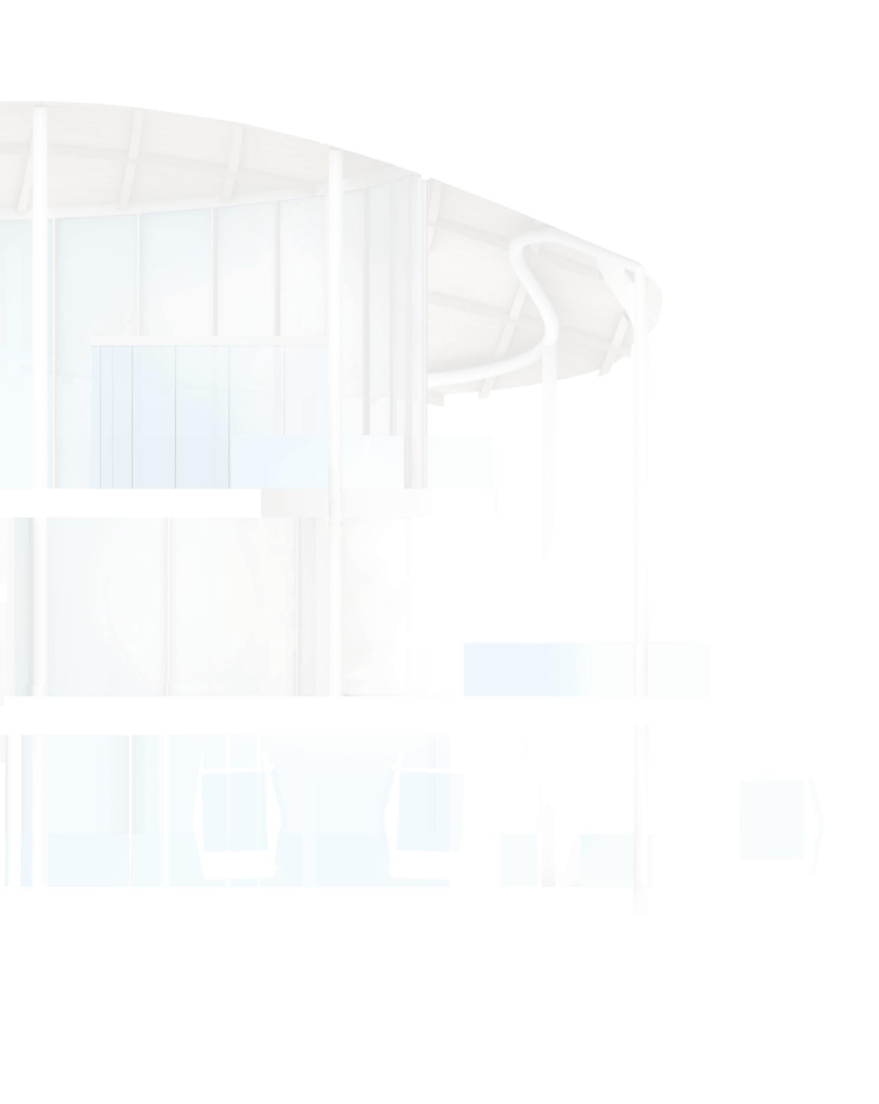 We designed a horizontal volume that dialogues with the surrounding green areas. The roof sits on pilotis, and the facades of the interior spaces are fully glazed. The curved geometry softens the boundary between the interior and exterior, and the courtyards bring daylight to the centre of the project. Privacy is enhanced by the shape of the roof, which dips down to 2.1m at the junction between programmes.