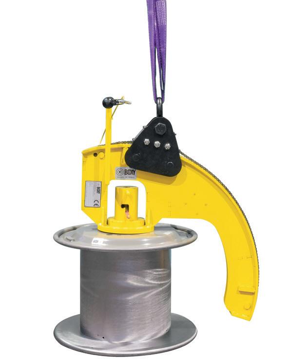 Manual lifter to handle horizontally reels with a maximum weight of Kg.1250 and a minimum central bore diameter of 30mm. Available in any colour. It is an excellent solution to lift reels where there are no possibilities to take hold from the flanges. CE-certified and supplied with use and maintenance manual. Consult the DIN 46391 / 46395 and DIN 46397 standards or customize your dimensions.