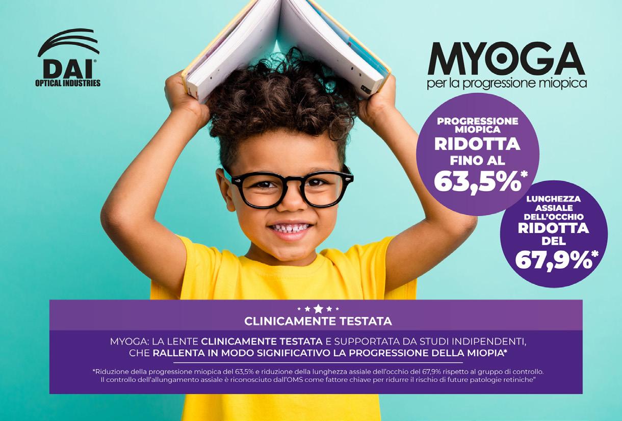 Dal 2019, MYOGA, l’unico design italiano di lente free-form dedicata al controllo della miopia, si è affermata come riferimento nella gestione della progressione miopica. Sviluppata dal Centro Studi di Dai Optical, MYOGA combina precisione ottica e conoscenze cliniche per controllare il defocus periferico, rallentare la progressione della miopia e garantire un elevato comfort visivo.
