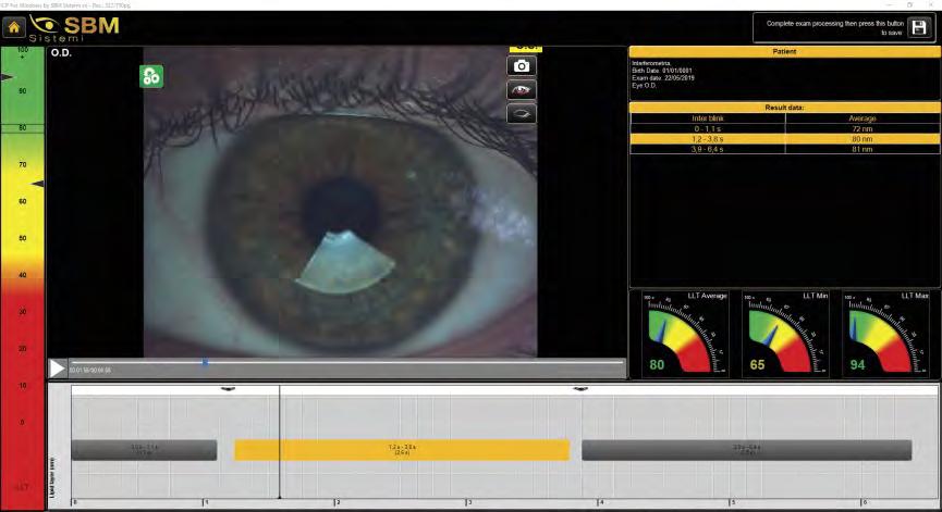 L’ultimo esame che va eseguito per avere una valutazione completa dell’occhio secco è l’interferometria che misura lo spessore dello strato lipidico, che risulta nella norma per valori tra i 100 e i 75 nm, mentre valori inferiori ai 50 nm sono patologici.