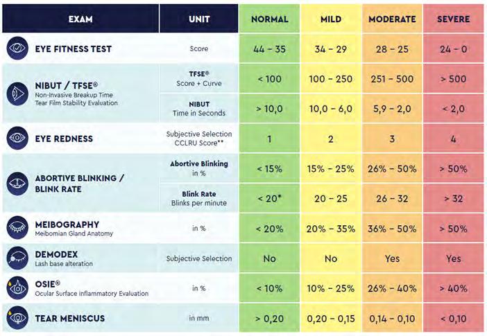 L’OSDI risulta nella norma per un scorse inferiore a 11, lieve per uno score tra 12 e 22, moderato tra 23 e 32 e infine severo per uno score tra 33 e 100. I pazienti vanno controllati a 30-60-90 gg almeno per poi ricontrollarli a 3-6 mesi in funzione della risposta alla terapia.